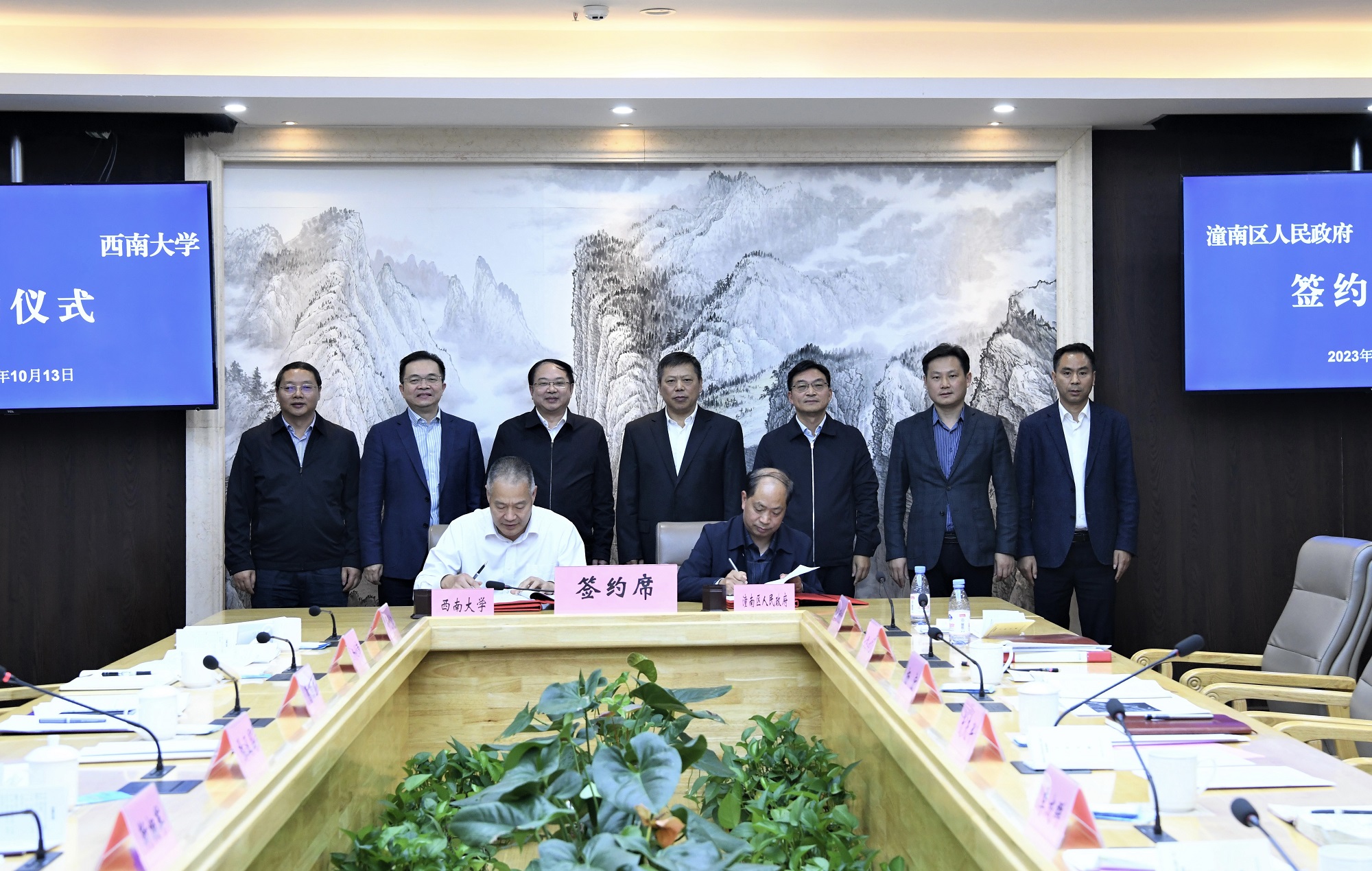 10月13日,学校与潼南区人民政府举行深化共建全国农业科技现代化先行区、共建beat365在线唯一官网登录潼南现代农业试验示范基地签约仪式。潼南区委书记文天平、区长李成群、区委副书记杨宏、副区长罗全良,beat365在线唯一官网登录校长张卫国、副校长葛信勇出席会议。葛信勇与罗全良代表双方签订协议,张卫国与文天平为基地揭牌。