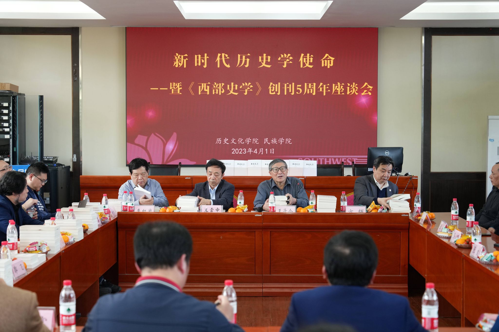 4月1日,历史文化学院 民族学院在学院报告厅成功举办“新时代历史学使命暨《西部史学》创刊5周年座谈会”。来自中国社会科学院大学、中国社会科学杂志社、中国人民大学、山东大学、烟台大学、重庆师范大学及beat365在线唯一官网登录期刊社、历史文化学院 民族学院的专家学者共计60余名师生出席本次座谈会。座谈会由历史文化学院 民族学院院长邹芙都主持。