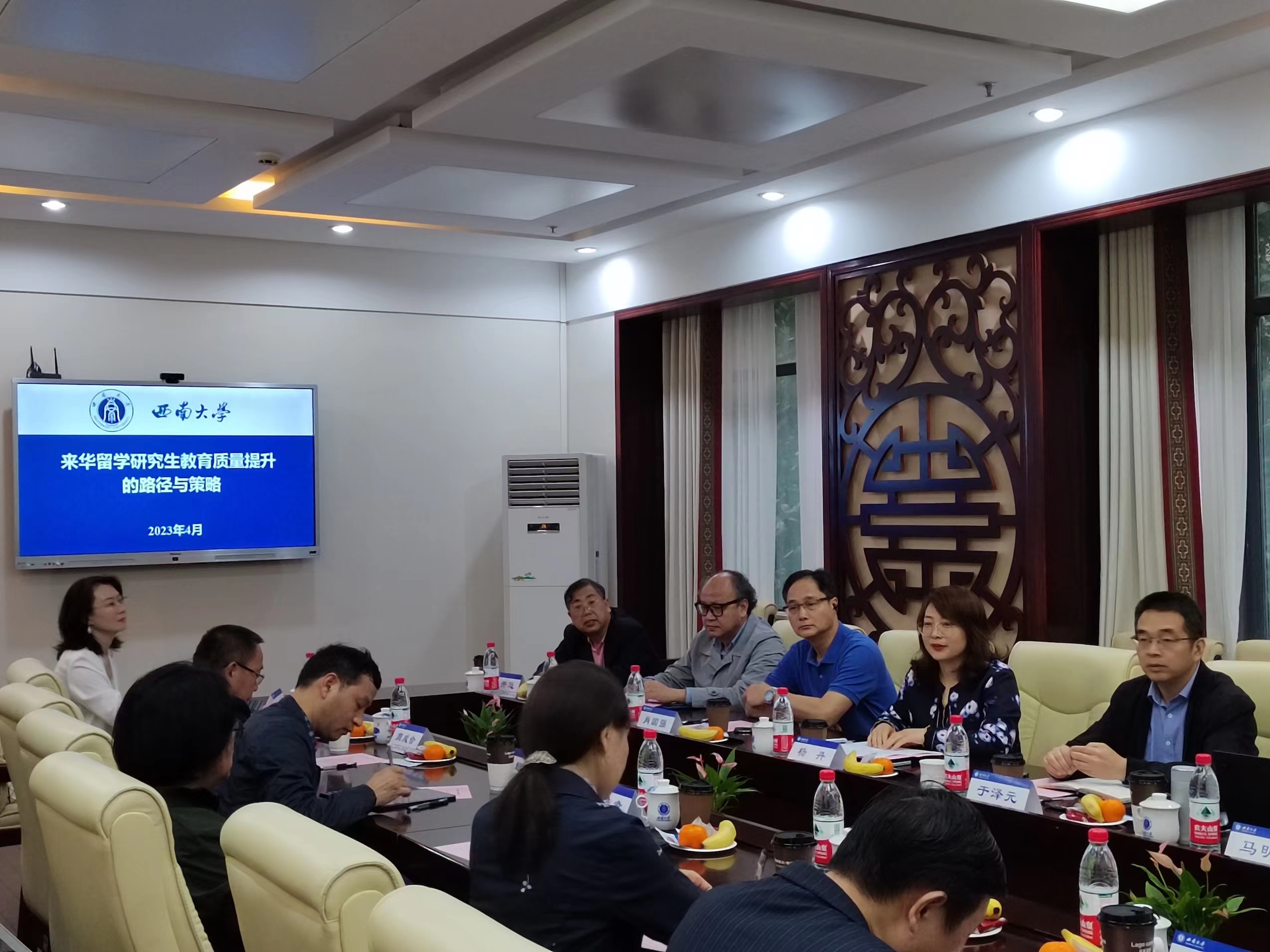 于泽元围绕来华留学研究生面临的重大挑战、着力提升来华留学研究生质量、关注来华留学研究生自身特质三方面作进一步分析。他提出“提高对来华留学工作的认识、提高全校对来华留学生的重视”两点倡议。相关工作人员对国际学生教学管理规定进行介绍。