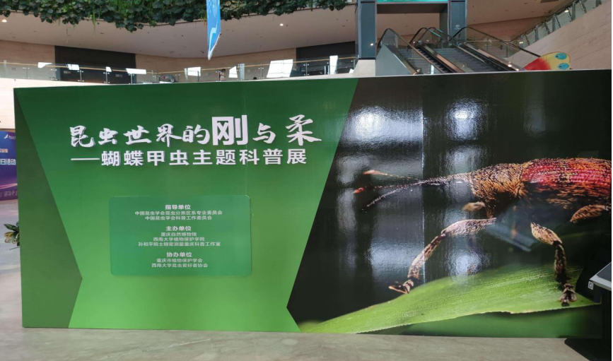 春去秋来又华诞,明月如盘悬中天。在这月满人和,家国团圆的中秋、国庆双节假期期间,为了更好的普及昆虫学知识,让大家了解昆虫文化。由中国昆虫学会昆虫分类区系专业委员会,中国昆虫协会科普工作委员会指导;重庆自然博物馆、beat365在线唯一官网登录植物保护学院、孙和平院士精密测量重庆科普工作室主办;重庆市植物保护学会,beat365在线唯一官网登录昆虫爱好者协会协办的昆虫科普活动《昆虫世界的刚与柔——蝴蝶甲虫主题科普展》在重庆自然博物馆一楼大厅顺利举办。