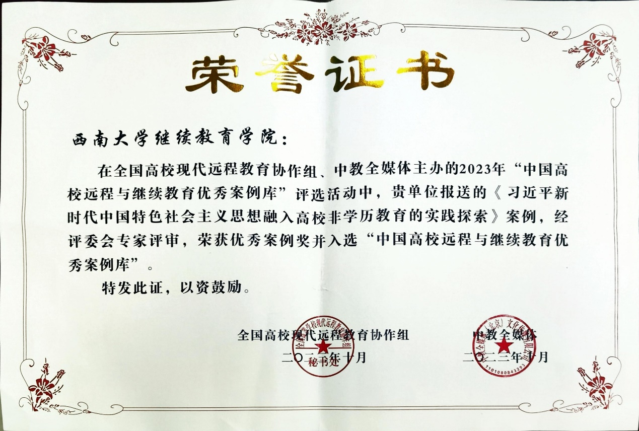 大会同期还举行了“2023最具社会影响力院校颁奖典礼”“2023中国高校远程与继续教育优秀案例库评选活动颁奖典礼”。继续教育学院荣获“2023最具社会影响力院校奖”和“2023中国高校远程与继续教育优秀案例奖”。