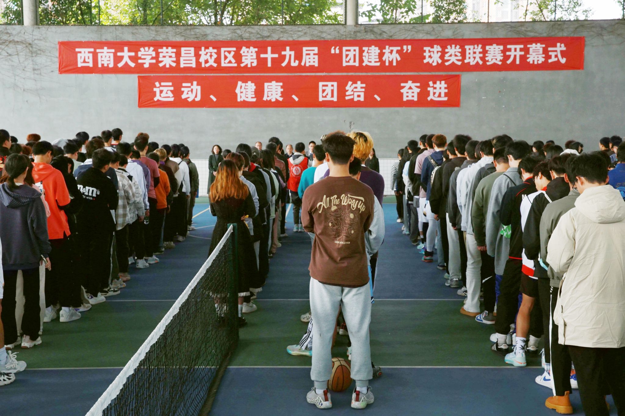 beat365在线唯一官网登录荣昌校区“团建杯”球类联赛已连续开展十八届,成为荣昌校区独具特色的文体品牌活动之一;2021年、2022年因为新冠疫情等原因中断了两年。本届“团建杯”球类联赛本着扎实推进立德树人根本任务,深化体教融合,实现文明其精神,野蛮其体魄的基本要求;按照学校“一体化”建设、发展要求,以进一步整合、提升荣昌校区文体活动育人效能,经过学校体委、校区党工委、管委会与各学院共同努力,特别是学校体委的大力支持和校区学工办的精心筹备下顺利开幕。校区党工委、管委会将继续通过“团建杯”球类联赛等校园文体活动,进一步整合提升协同育人效能,为学校一体化发展、“双一流”建设,特色鲜明的世界一流大学建设贡献力量。