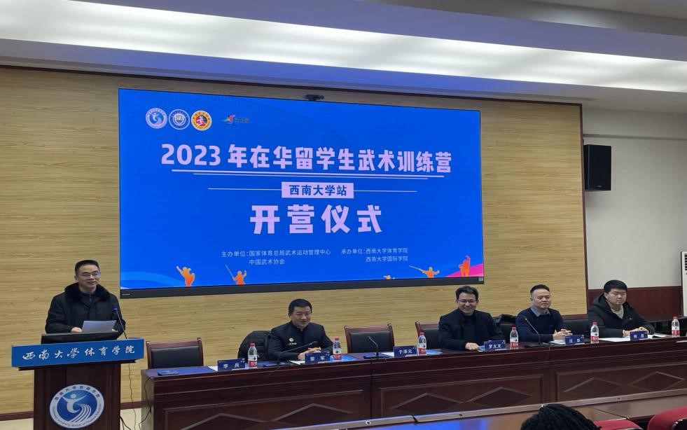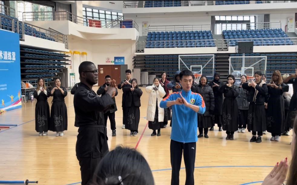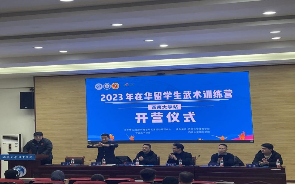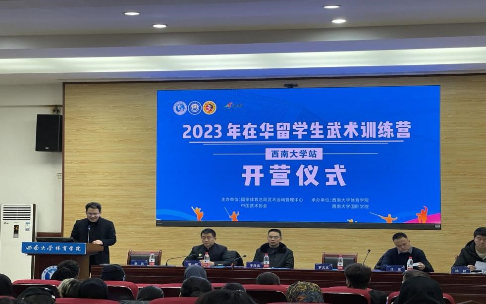 2023年12月23日,在华留学生武术训练营(beat365在线唯一官网登录站)开营仪式在beat365在线唯一官网登录体育学院多功能会议室举行。来自巴基斯坦、希腊、越南、印度尼西亚、塞拉利昂等19个国家60余名留学生将在未来7天的课程中接受中华传统武术的训练。