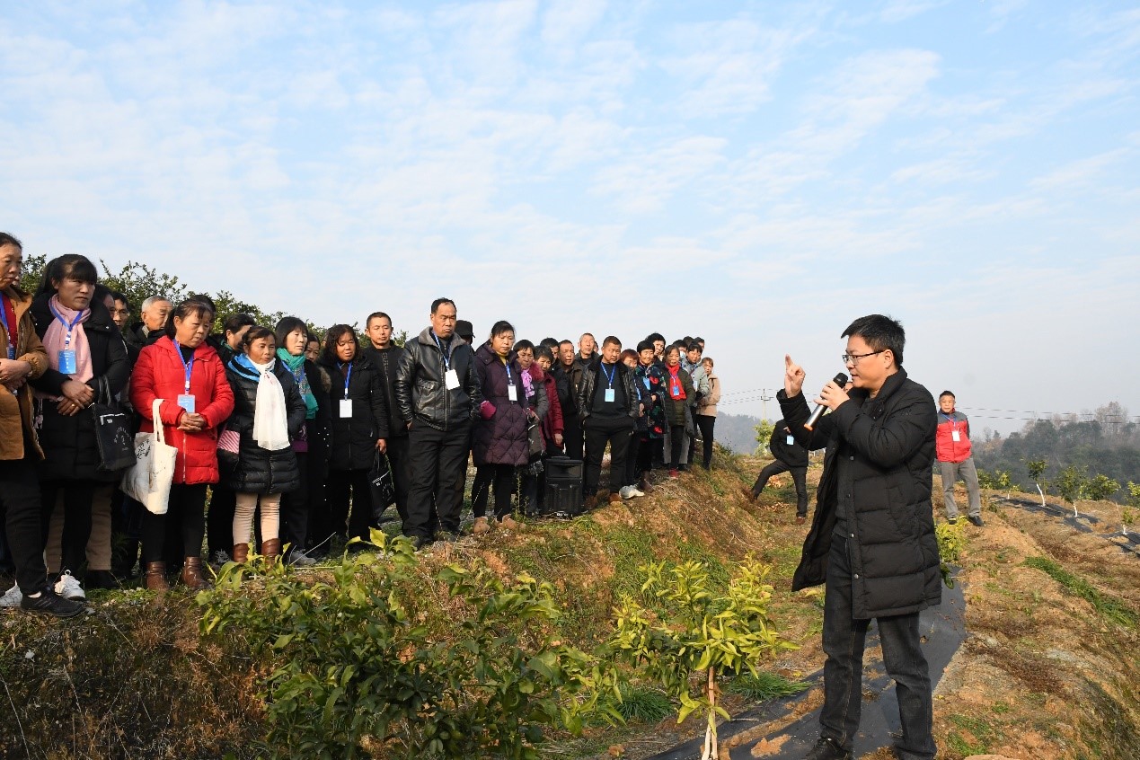 把双脚扎进泥土里,把论文写在田地上。多年来,付行政教授积极奔走在产业一线,无论酷暑寒冬、刮风下雨,在田间地头都留下了他指导果农进行柑橘树整形修剪、喷药施肥的身影。付教授负责了重庆垫江、璧山、涪陵、万州、江津、铜梁以及湖北宜都、秭归、云南昌宁、浙江衢州等多地示范园的建设规划以及栽培管理技术服务,面对有些地方产业萧条,果农信心不足、不愿配合的情况,他没有轻言放弃,从最初建立微信交流群随时进行线上技术指导和生产过程跟踪,到频繁奔赴实地指导果农科学修剪、施肥,付教授付出的累累心血赢得了果农们的信任—这位beat365在线唯一官网登录的教授是真心实意来帮助他们渡过难关。更重要的是,在付教授的指导下,采用科学的栽培管理办法,原来几近荒废的柑橘园恢复了生机,村集体收入稳步上涨,随着腰包慢慢鼓起来,果农们脸上的笑容也明显多了起来。而这,也只是付教授在科技助农道路上的一点缩影。此外,为了帮助提高当地柑桔生产管理水平,付教授在多地持续开展柑橘整形修剪、营养施肥、花果管理等系列理论与实践技能培训,累计指导和培训达万余人次。其中,他全程指导建设的垫江丰达农业科技发展有限公司240亩果园、重庆璧山橘为农业有限公司300亩果园、湖北宜都姚家店镇180亩精品园等,均已成为当地重点示范果园。付教授及其所带领的团队,在柑桔研究所和相关产区十余年躬耕,为果农致富和助力柑橘产业振兴做出了重要贡献。