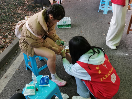 为更好提供运动康复服务,体育学院邀请重庆城市科技学院体育与大健康学院运动康复专业师生志愿者开展更为专业精细的运动康复服务,受到了考生欢迎和好评。一个笑容、一杯饮水、一条肌贴、一句加油,党员志愿者们将“时时有服务,事事有回应”的志愿服务理念落实在细节处,得到了考生、家长和带队教师的认可。