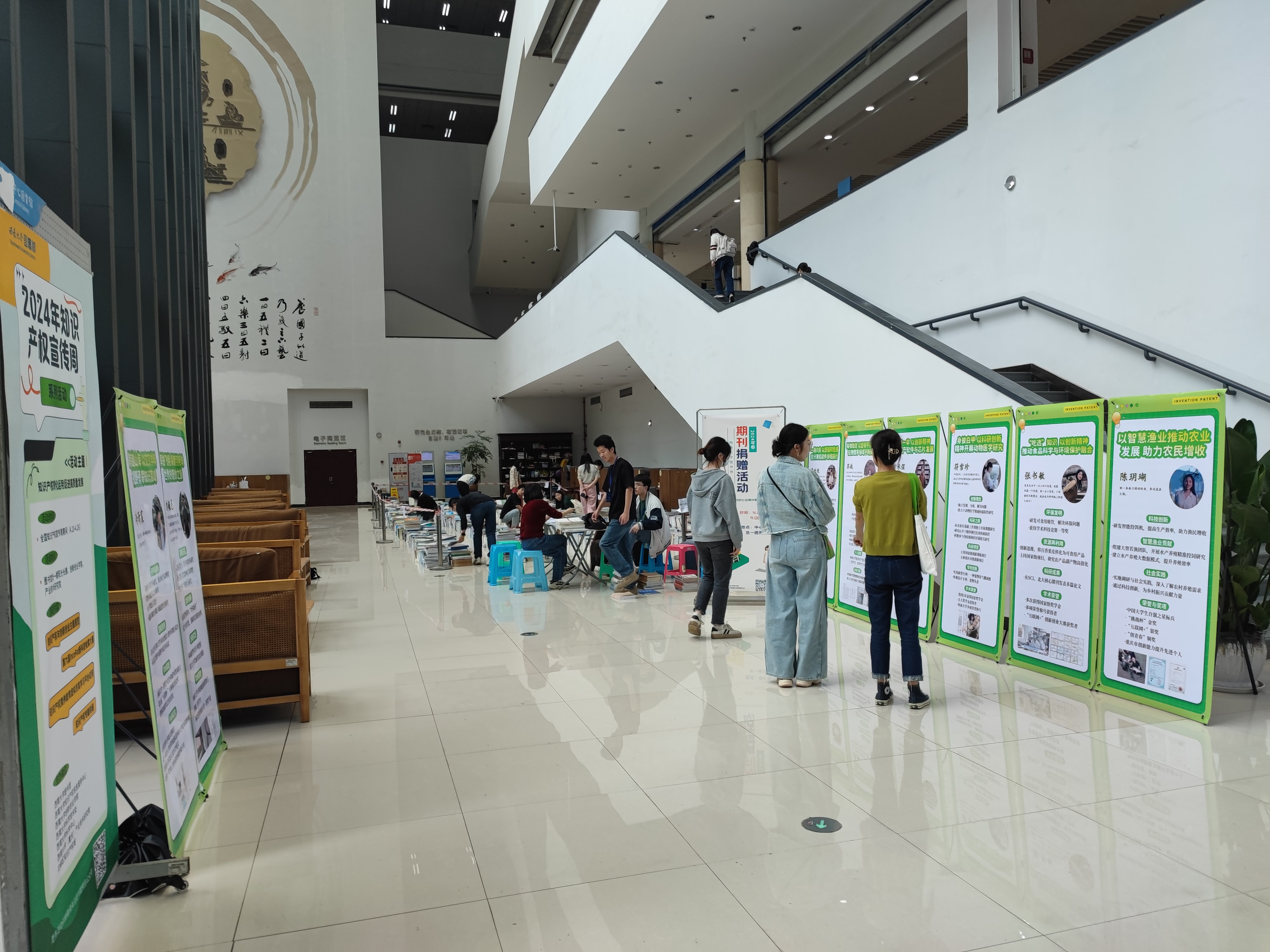 4月20日至30日,图书馆、创新创业学院、资产经营有限公司、科学技术处(科协)等在中心图书馆联合举办“知识产权与创新创业”主题展览,宣传学校科研团队成果转化的典型案例和学生创新创业的优秀案例。展出海报反映了学校科研团队成果转化显著成效,以及学生在创新项目、发明专利、科研竞赛、社会实践等方面的成就与荣誉,充分体现beat365在线唯一官网登录师生在知识产权创新和利用方面的能力。学生纷纷驻足观看并在主题展架前进行拍照打卡。
