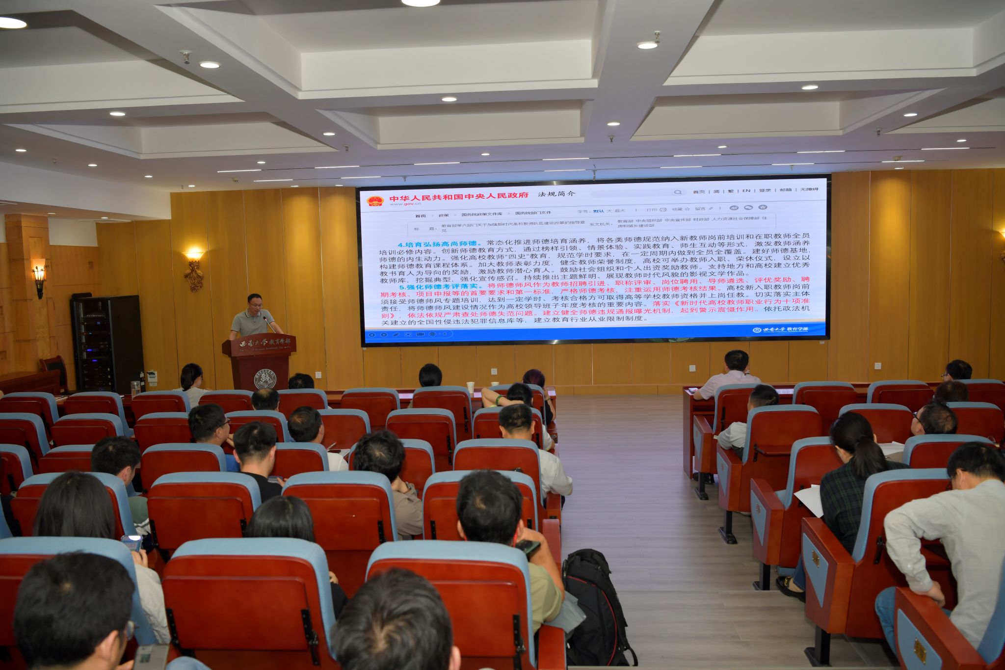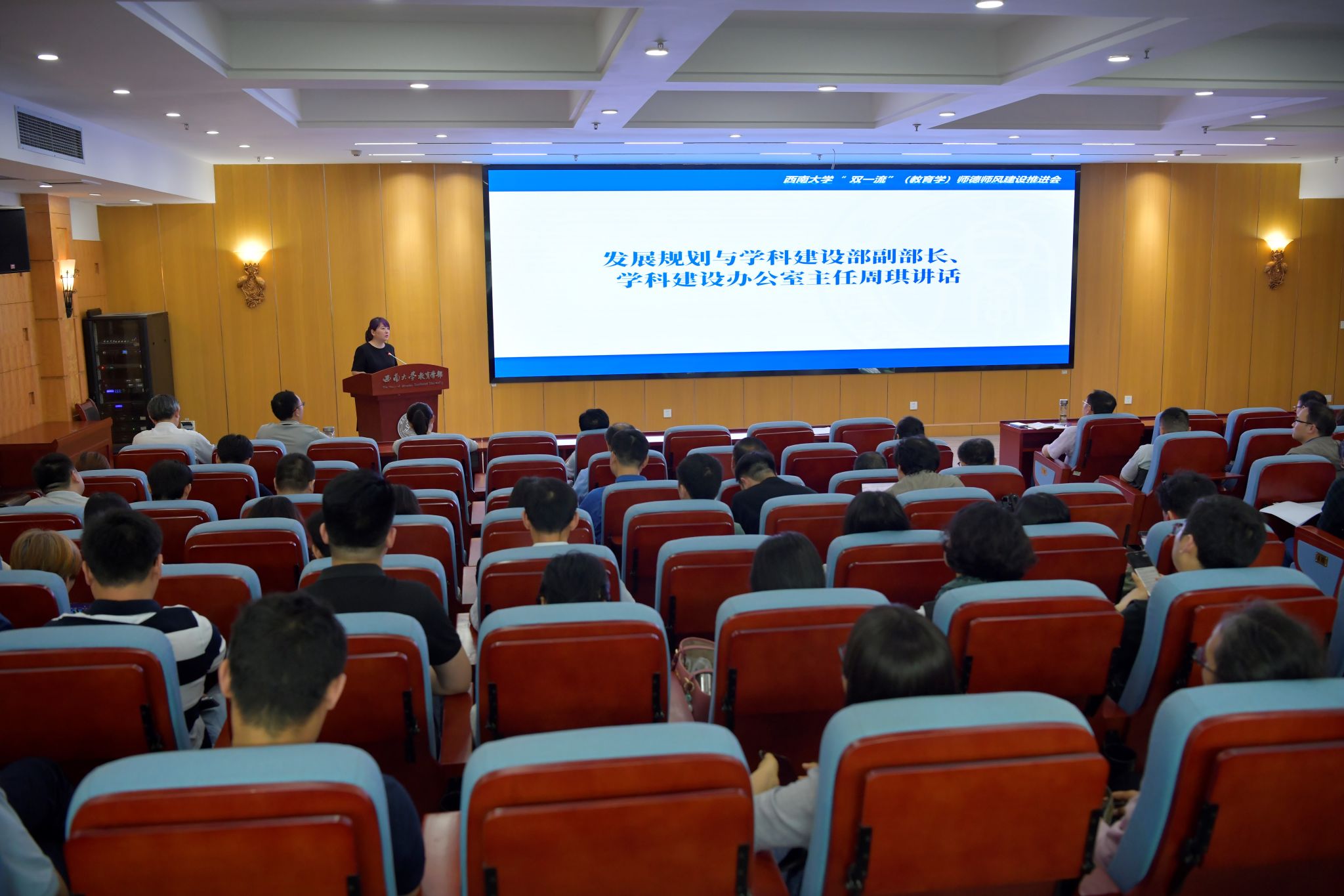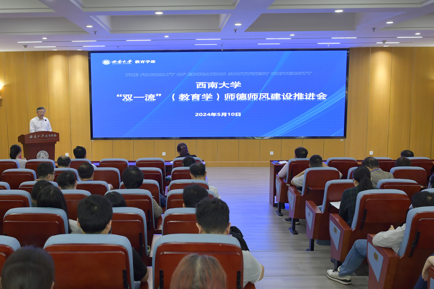 5月10日下午,beat365在线唯一官网登录“双一流”(教育学)师德师风建设推进会在教育学部802报告厅顺利召开。学校党委教师工作部部长李燕,发展规划与学科建设部副部长、学科建设办公室主任周琪,教育学部全体班子成员和教育学部、西南民族教育与心理研究中心教职工参加会议。会议由学部党委书记周文全主持。