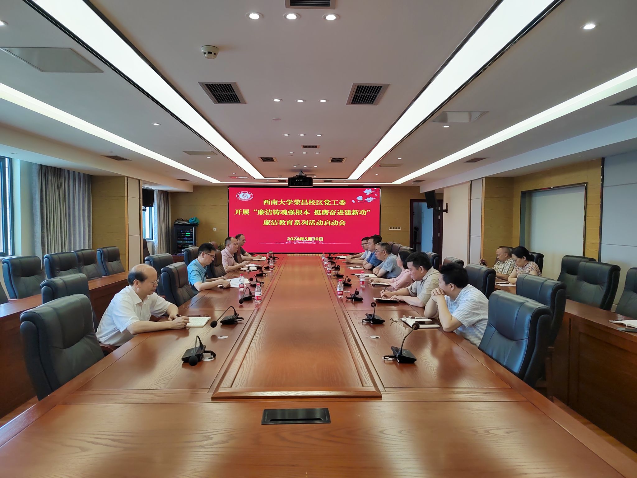 为深入学习贯彻习近平新时代中国特色社会主义思想和党的二十大精神,推动党纪学习教育走深走实,进一步夯实清正廉洁思想根基、厚植廉洁奉公文化基础、培养廉洁自律道德操守、弘扬崇廉拒腐社会风尚,根据beat365在线唯一官网登录纪委办公室《关于开展“廉洁铸魂强根本 挺膺奋进建新功”廉洁教育系列活动的通知》精神,荣昌校区党工委于2024年5月30日上午召开廉洁教育系列活动启动会。荣昌校区党工委副书记 纪工委书记穆奎、副处级组织员包尔泉、机关党总支书记、离退休党委书记、机关党支部书记及综合办公室党务工作人员参加会议,穆奎主持会议。