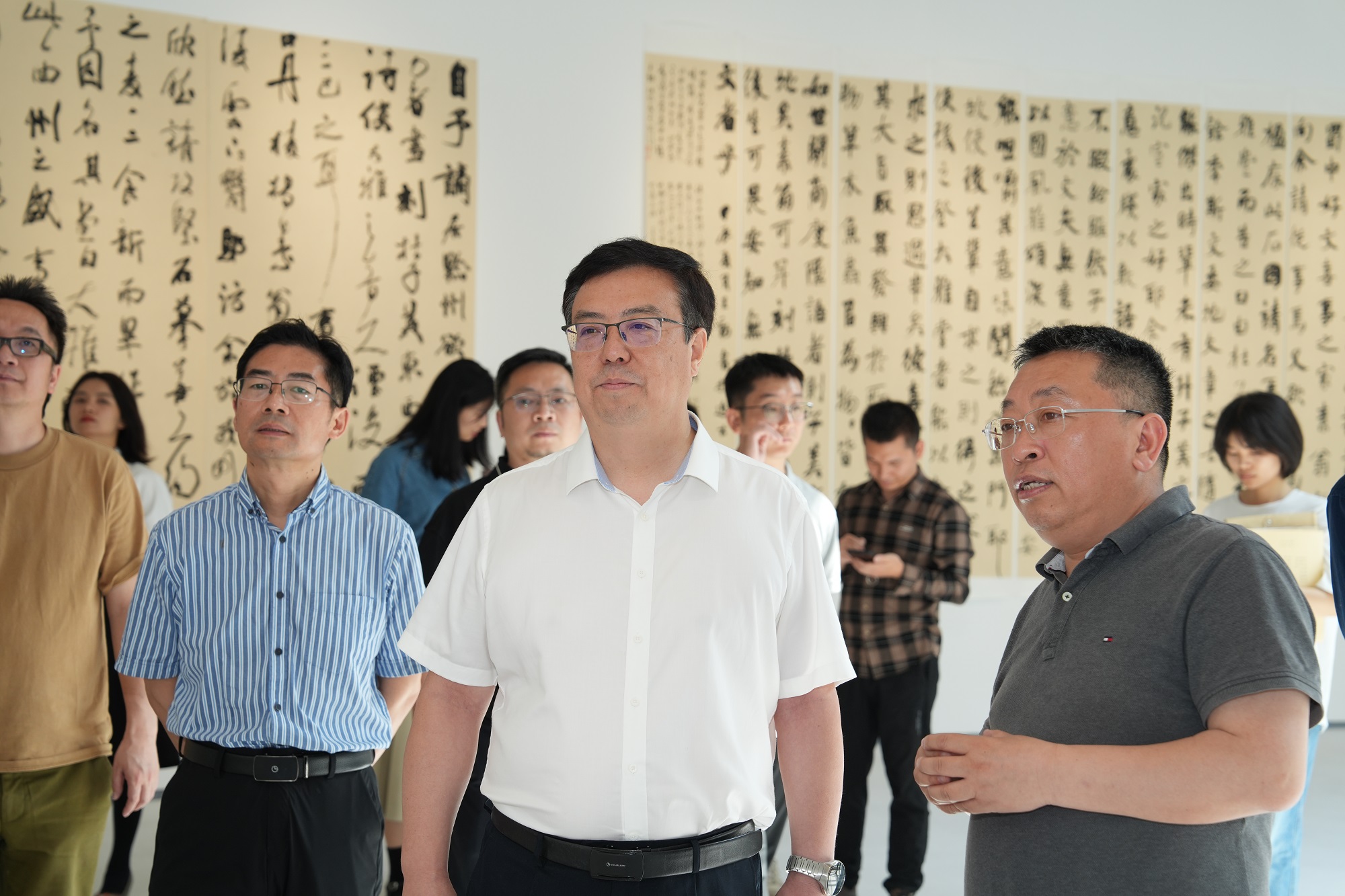 5月31日下午,王进军校长就艺术学科人才培养工作先后调研参观美术学院2024届本科生毕业作品展和beat365在线唯一官网登录中国书法研究所2024届毕业生作品展,相关职能部门负责人陪同调研。