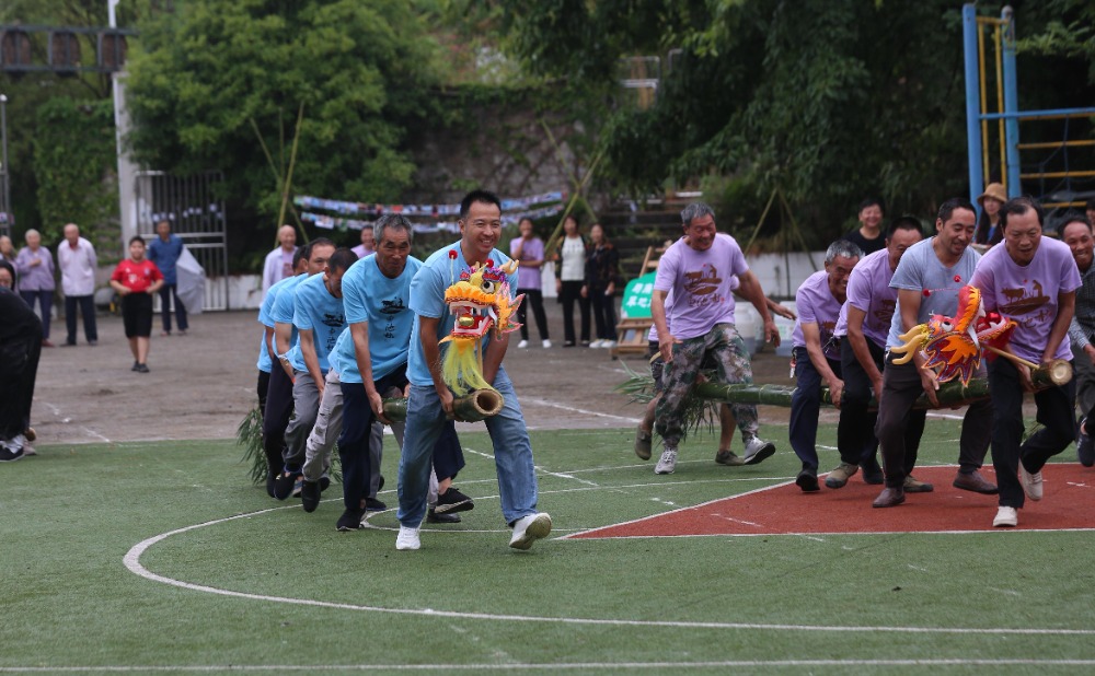 农民丰收节是属于农民的盛会,是开放和充满欢乐的盛会。鱼池村的村民和游客村民与游客组成6支队伍,通过旱地龙舟赛、玉米脱粒赛、酵素搬运接力赛等比赛,将本次丰收节的气氛推上了最高潮。选手们的奋楫竞逐,持续点燃着观众们的热情。大家纷纷鼓掌呐喊,为他们助威。