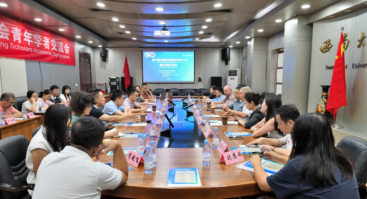Donald Broom教授应邀做了“国际动物福利科学研究进展”为题的主旨报告,分享了在动物福利科学、伦理和政策制定,动物福利与动物性食品卫生的关系等方面的最新研究成果。还与参会的青年学者就动物行为学,动物健康管理以及动物保护法律等议题进行深入互动交流。Donald Broom教授是动物福利领域的国际顶尖学者,其在提升动物生活质量、减少动物在科研和教育中的使用以及推动动物权益立法等方面做出了杰出贡献。在青年学者座谈交流会中,与会专家分享英国及其他欧盟国家在动物福利工作方面的经典做法,探讨了动物福利对全球畜牧业高质量发展的重要性,同时指出了目前全球动物福利所面临的挑战。