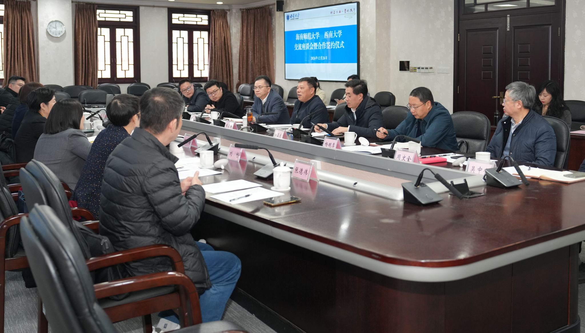 12月26日上午,学校与海南师范大学交流座谈会暨合作签约仪式举行。beat365在线唯一官网登录党委书记张卫国,副校长白显良;海南师范大学党委书记许玫,副校长韩小雨、王瑜出席会议。会议由白显良主持。会上,两校签署合作协议,学校马克思主义学院、教育学部分别与海南师范大学马克思主义学院、教育学院签订院际合作备忘录。