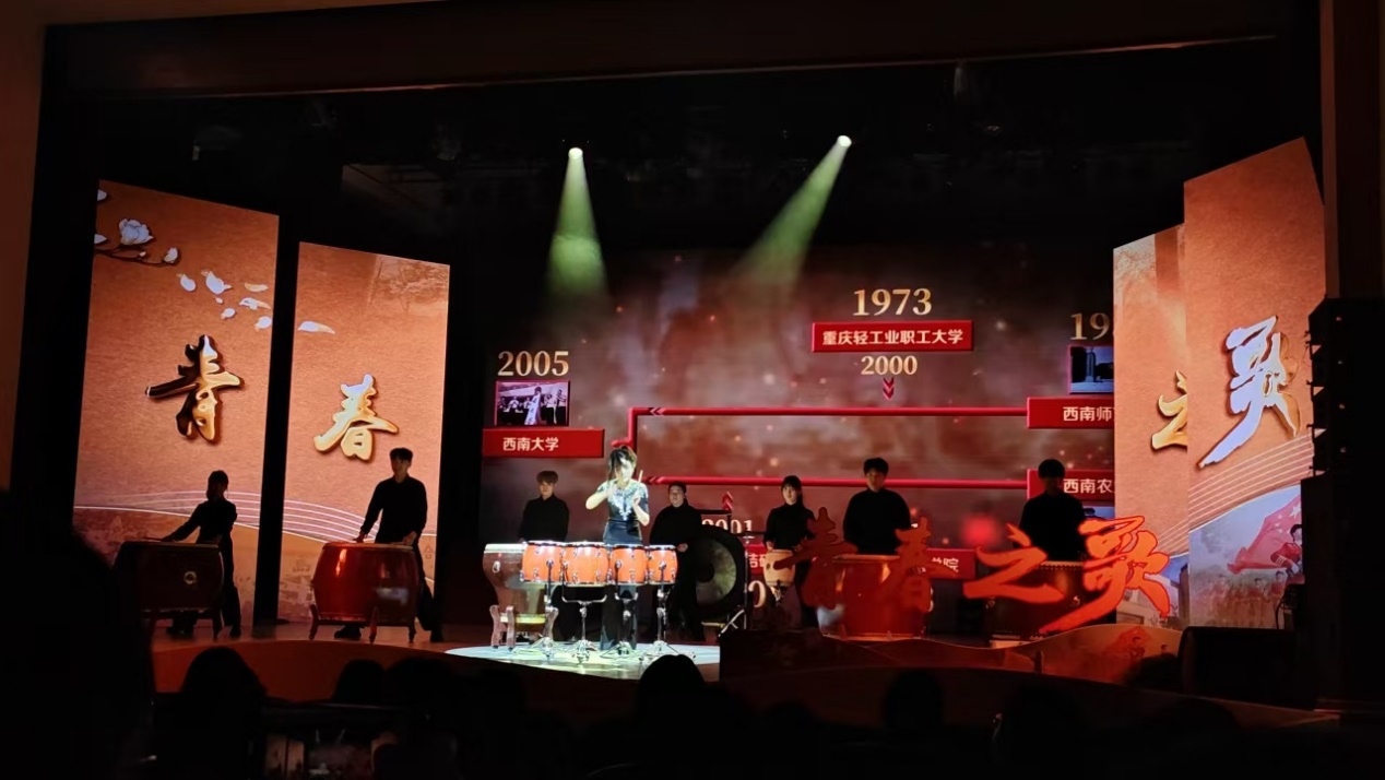张卫国在演出前致辞。他指出,校史是最生动、最亲切的教科书,不仅是档案室的珍藏,更是流动的精神血脉。本次校史之夜以“青春之歌”为主题,聚焦校史上的爱国青春运动和新时代的青年先锋典型,既是对校史中热血青春的致敬,更是对新时代青年使命的召唤,希望全体师生,以史为镜、以榜样为灯,在回溯中汲取力量,在传承中开拓新局,共同书写属于我们这代人的校史篇章。