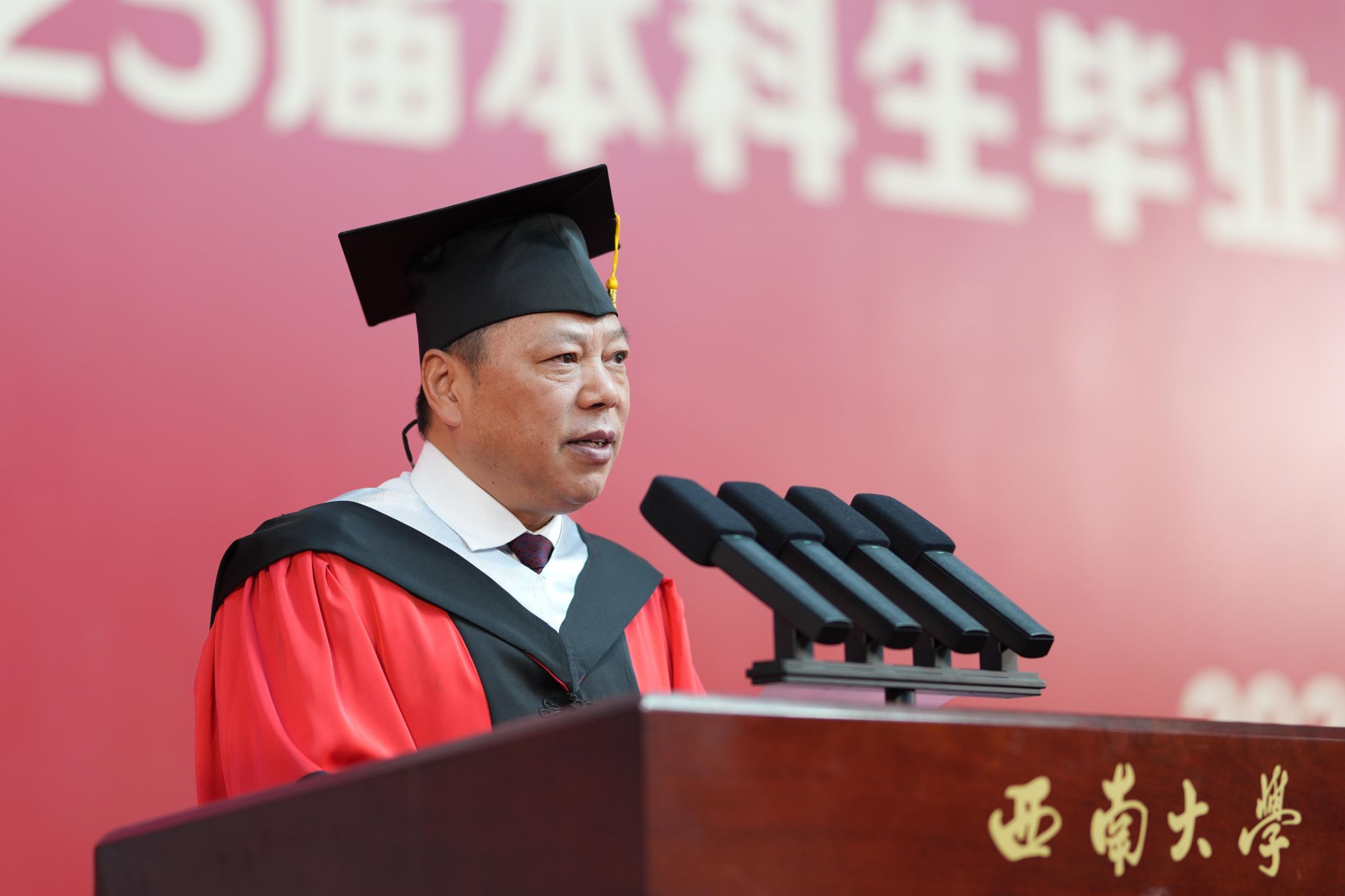 6月26日上午,学校在北碚校区中心体育馆和荣昌校区学生活动中心同步举行2025届本科生毕业典礼暨学位授予仪式,庆祝9434名本科毕业生圆满结束大学生活,开启人生新篇章。