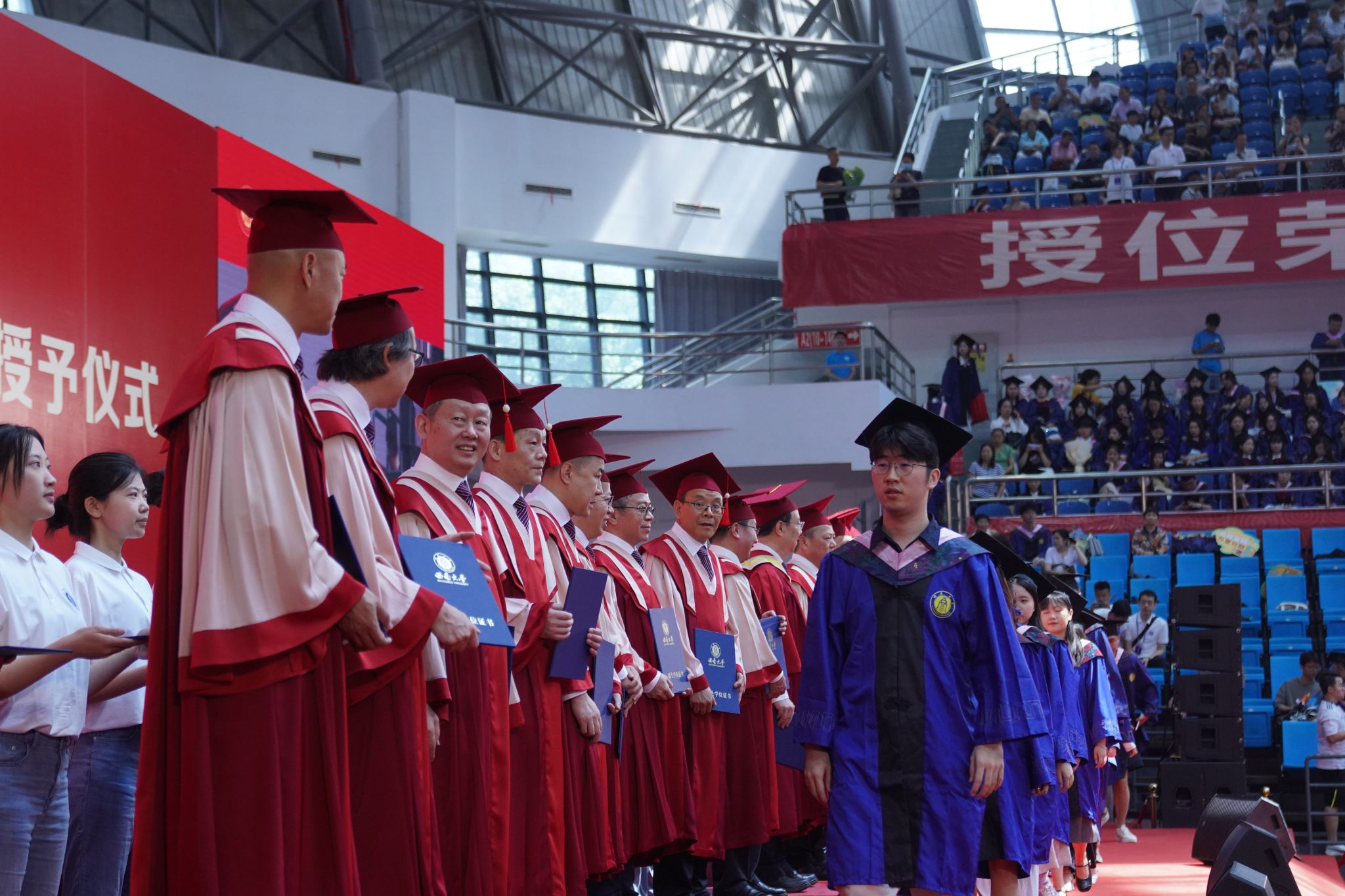 随后进行的证书颁发环节中,学校依次为毕业研究生代表颁发毕业证书,向优秀毕业研究生代表、优秀研究生学位论文获奖代表授予荣誉证书。
