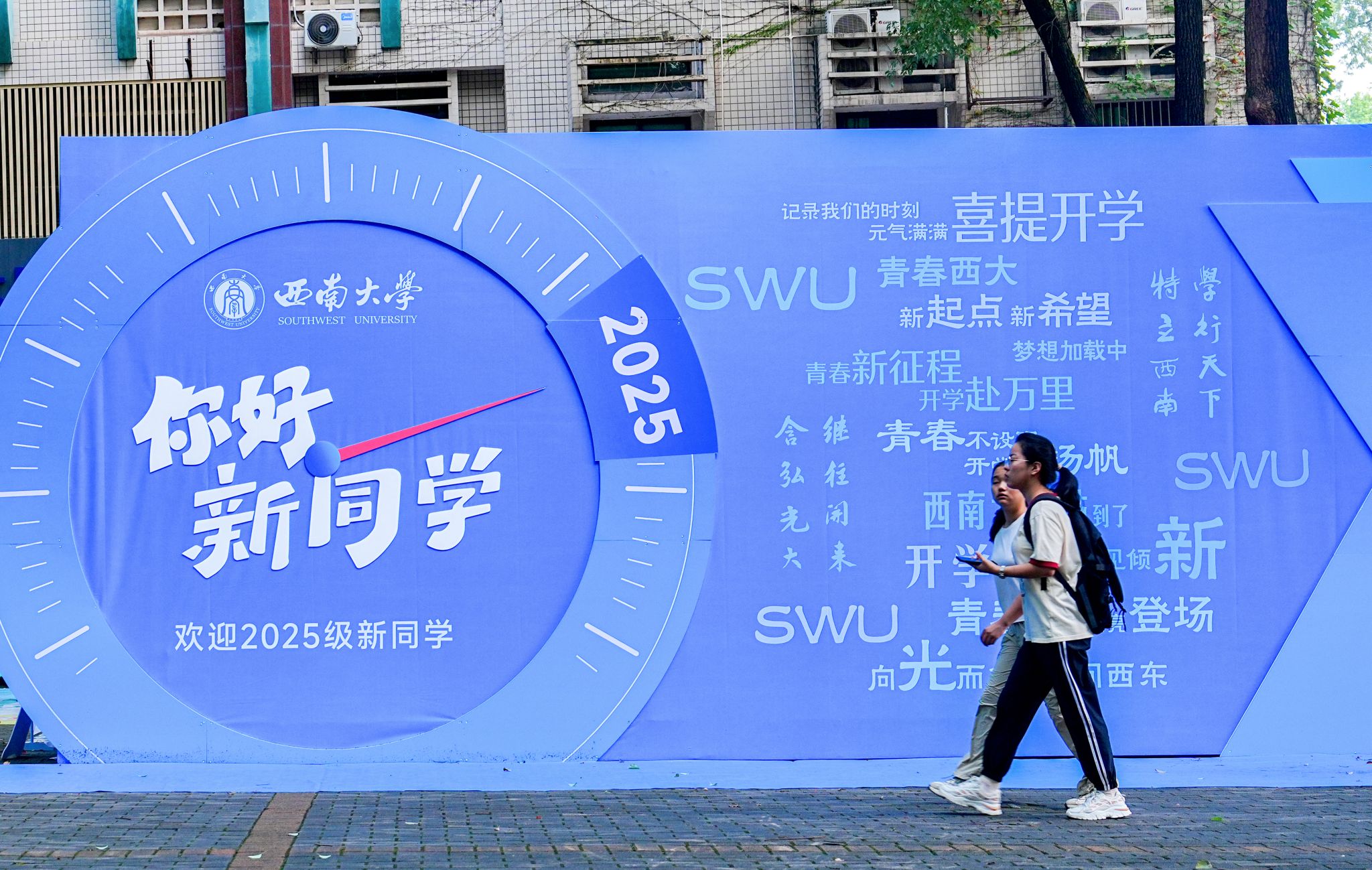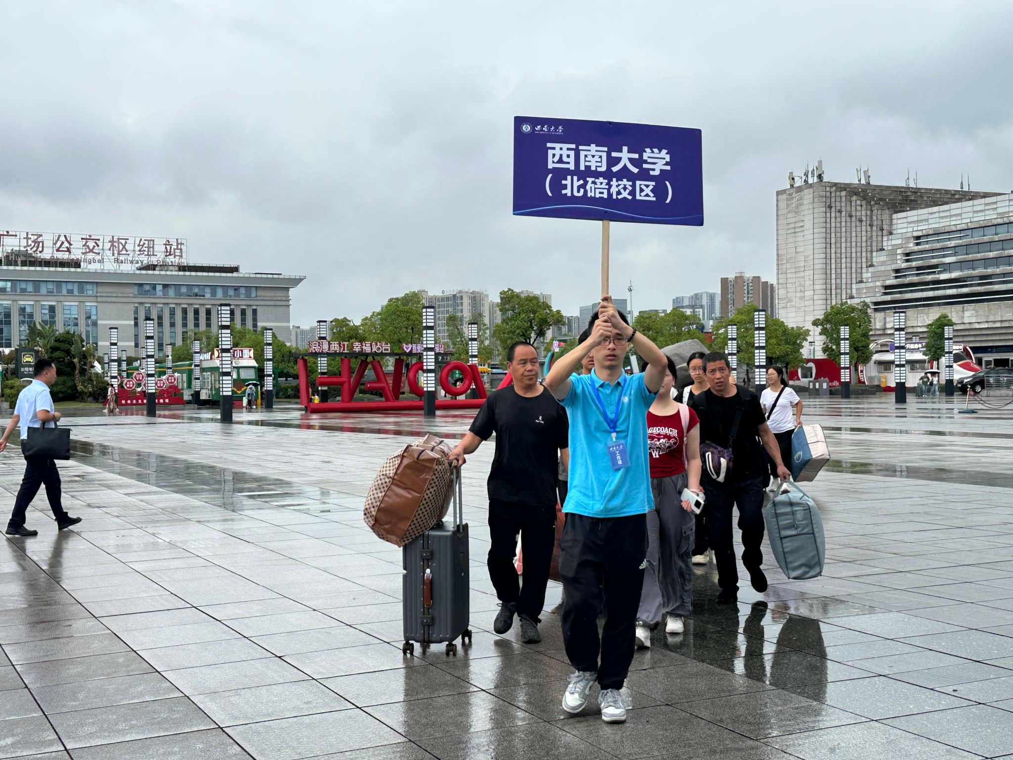 迎新期间,学校在江北机场、重庆西站等重要交通枢纽设有新生接待站,安排专车接运新生到校。在校内,学校设置多个志愿服务站为新生及家长提供路线引导、行李搬运、饮用水发放等各类暖心志愿服务。新生入学“绿色通道”同步开放,确保家庭经济困难新生顺利入学。在各学院(部)报到点,创意迎新展板、欢迎横幅等营造出温馨迎新氛围,同学们还能领取精心设计的新生入学礼袋。