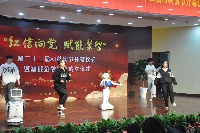仪式开始前,信智学院艺术团和智能机器人带来了人机互动舞蹈——匈牙利之舞,用青春洋溢的方式展现着人工智能的发展与运用。