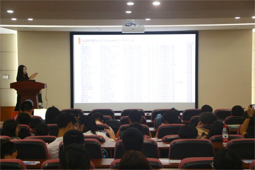 在讲座中,黄老师针对信智学院学生的学科特点进行专业分析,结合当前的最新政策和热门方向综合分析今后考研的发展趋势,围绕考研的目的、院校专业选择、考研心态调节及学习方法调整等方面开展详细指导。她从考研与高考的区别聊到考研的重要性,从经验之谈到考研方向讲解,对一些热门院校和专业展开细致入微的剖析与对比。同时,黄老师引用金年会优秀学子的考研案例,分析了考研过程中院校的选择对考研上岸率的影响,她鼓励同学们早了解、早规划,提高效率,降低风险。