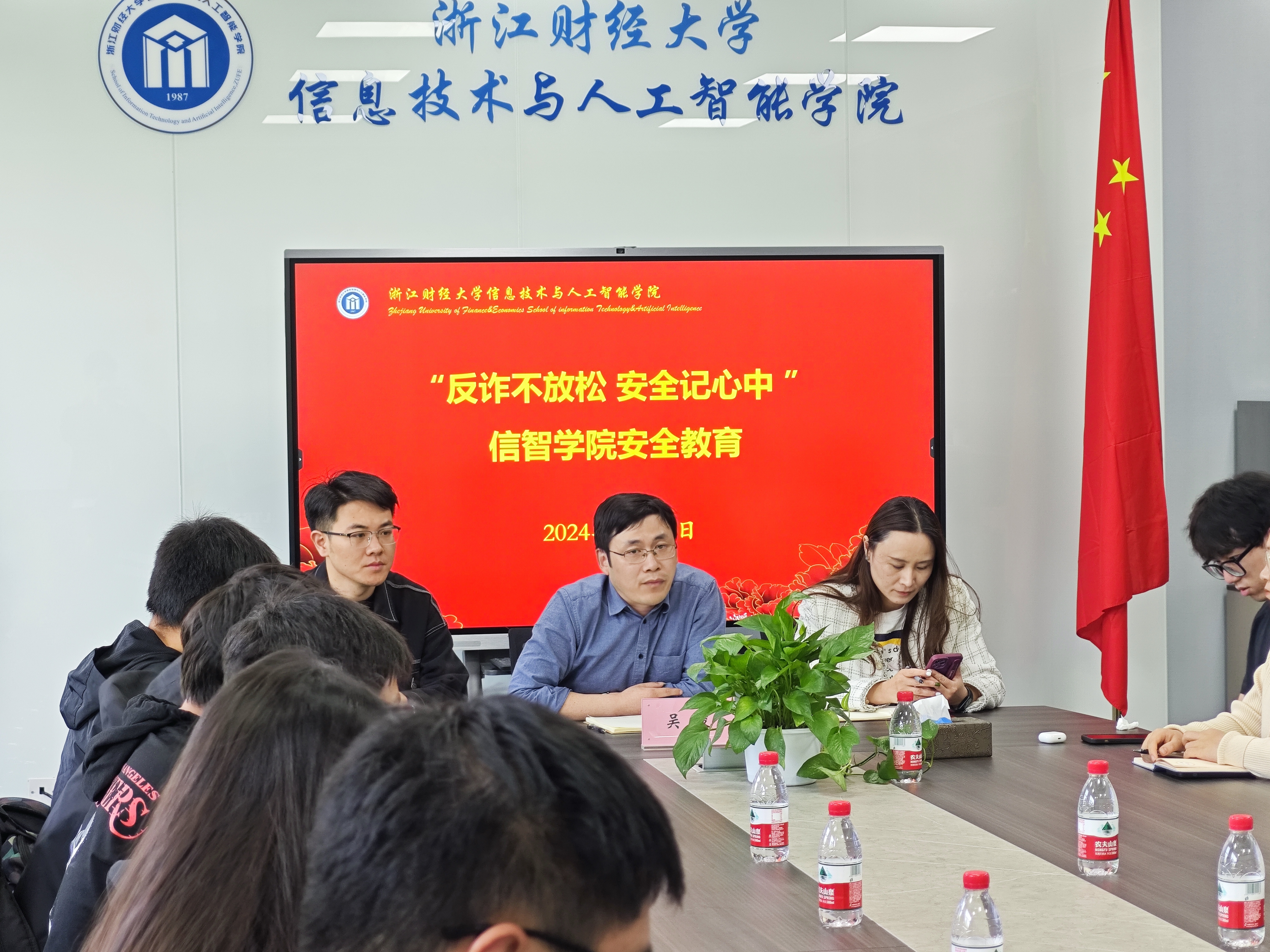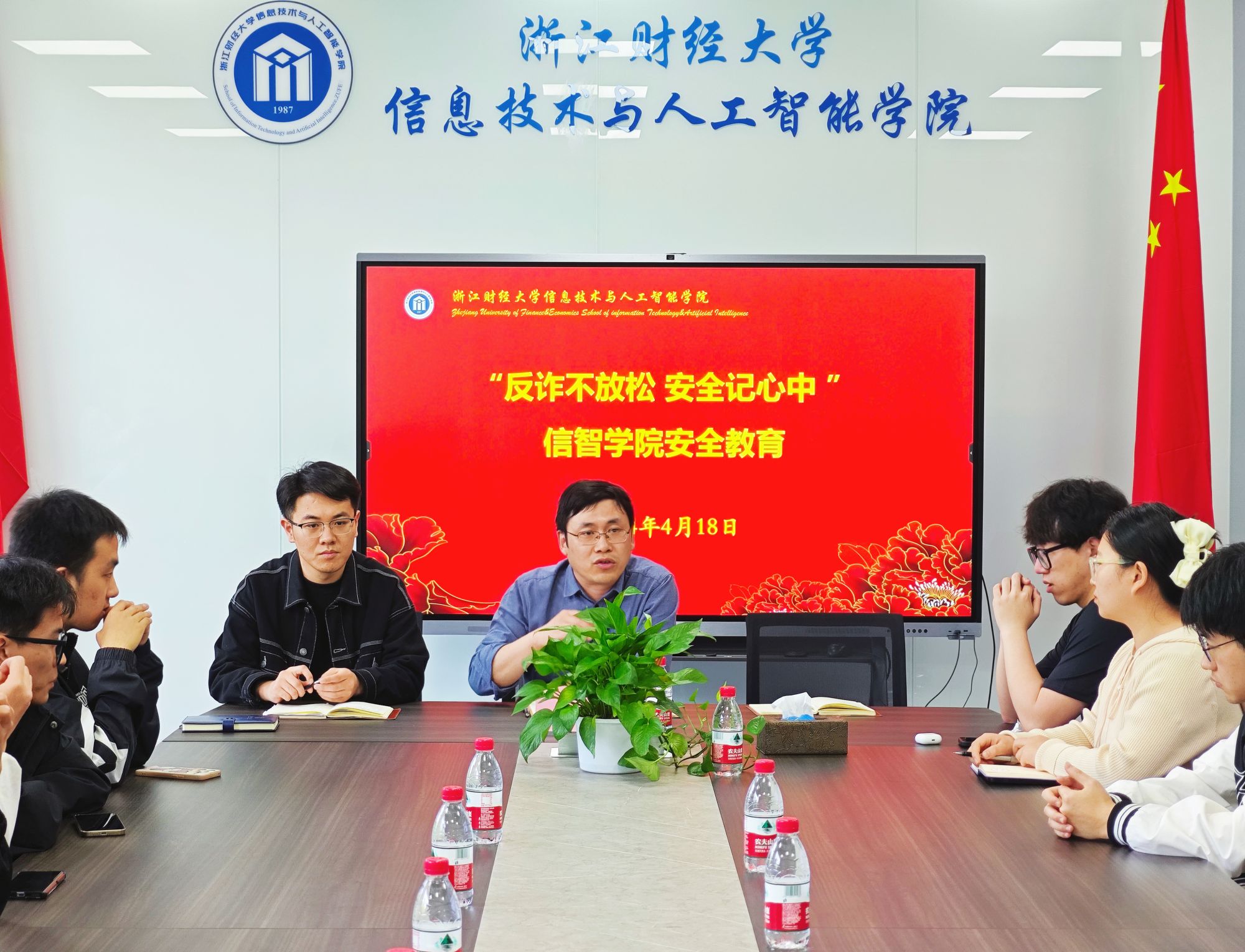为进一步加强校园安全教育,提高师生安全防范意识,提升师生反诈能力,保护学生人身、财产安全。4月18日,金年会在9508会议室举办“反诈不放松,安全在心中”主题安全宣传活动。本次活动特邀学校保卫处副处长吴俊、保卫处徐晓珊主讲,信智学院学办主任洪宝华、辅导员吴泽勇,本科生、研究生代表参加本次活动。