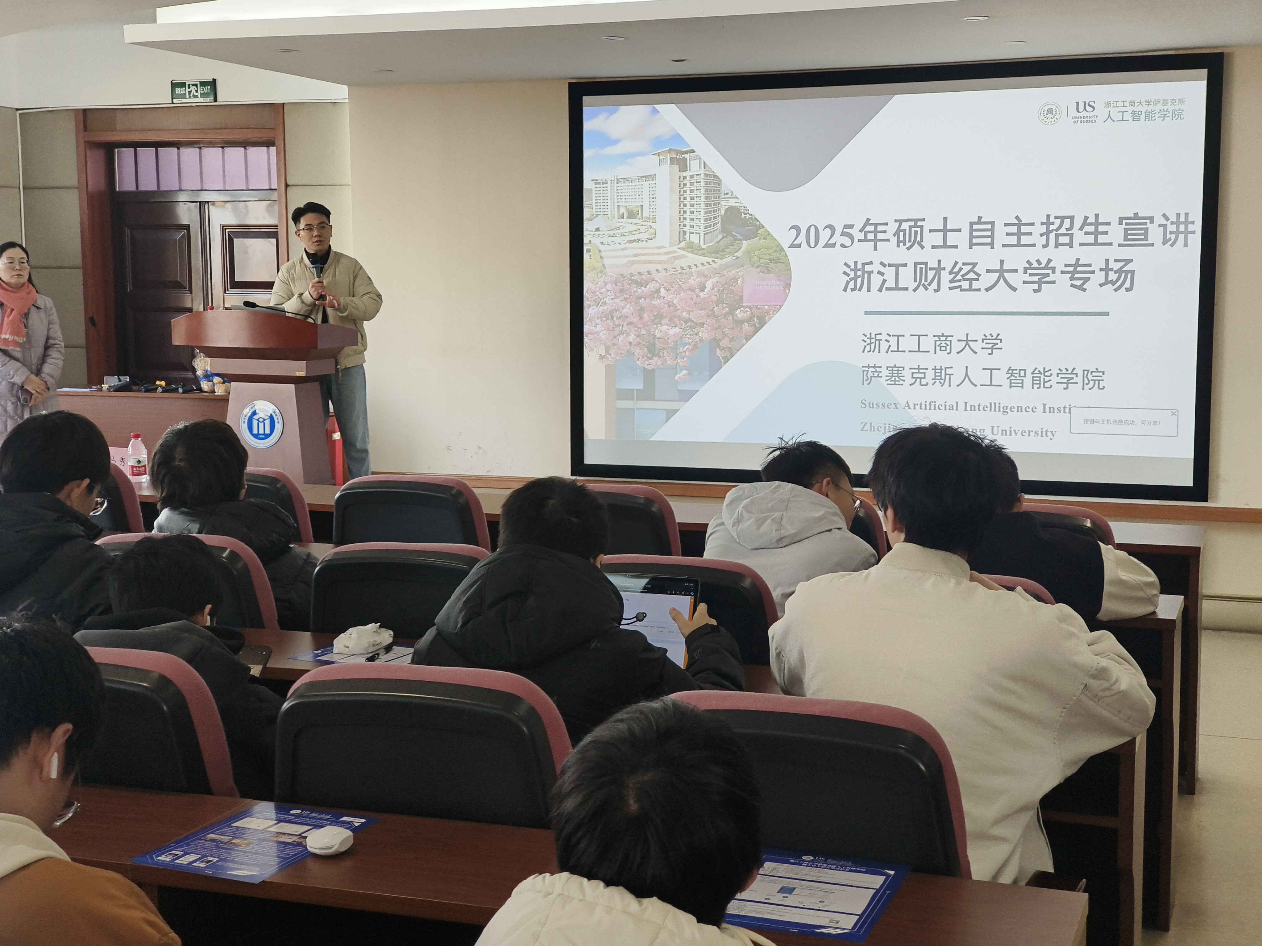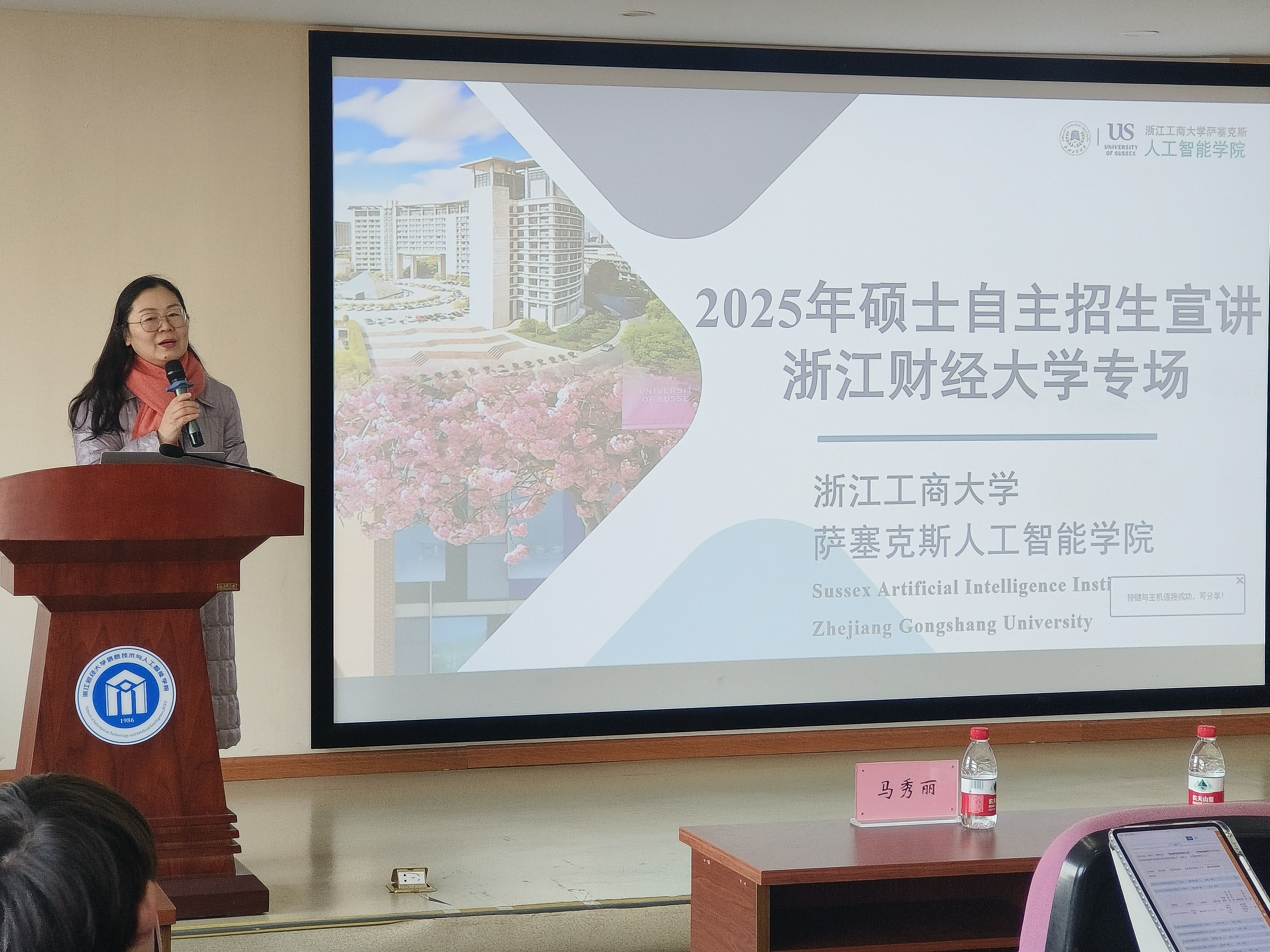 讲座中,马秀丽老师全面而细致地介绍了当前的考研形势,随后介绍了浙江工商大学萨塞克斯人工智能学院,分享中外合作办学硕士研究生项目与国内考研的异同,包括报考条件及优势。讲座中,马老师通过提问等方式与同学们互动交流,加深同学们对本次宣讲的了解,并为同学们送上小礼物。最后,马老师鼓励同学们认真完成当下学业,并尽早做好学业规划。