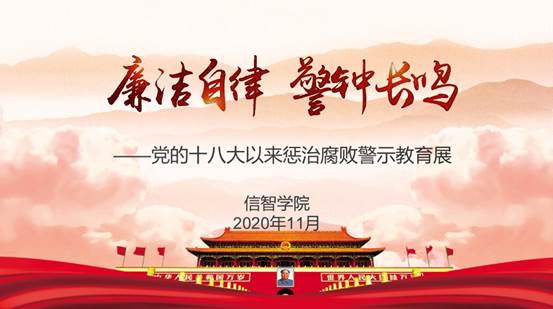 学院开展“清廉钟声”警示案例展,组织师生运用数据挖掘专业知识,收集违纪警示案例,将案例数据可视化,以案明纪,提醒广大师生“手莫伸,伸手必被捉。”警示教育展对十八大以来落马的高官和高校领导进行数据展示,提醒大家要时刻保持廉洁自律意识。“以铜为镜可以正衣冠,以人为镜可以明得失”,通过警示展以反面典型为镜鉴,帮助广大党员树立正确的人生观、世界观和价值观,牢固树立思想道德防线,耐得住艰苦,管得住小节,挡得住诱惑。