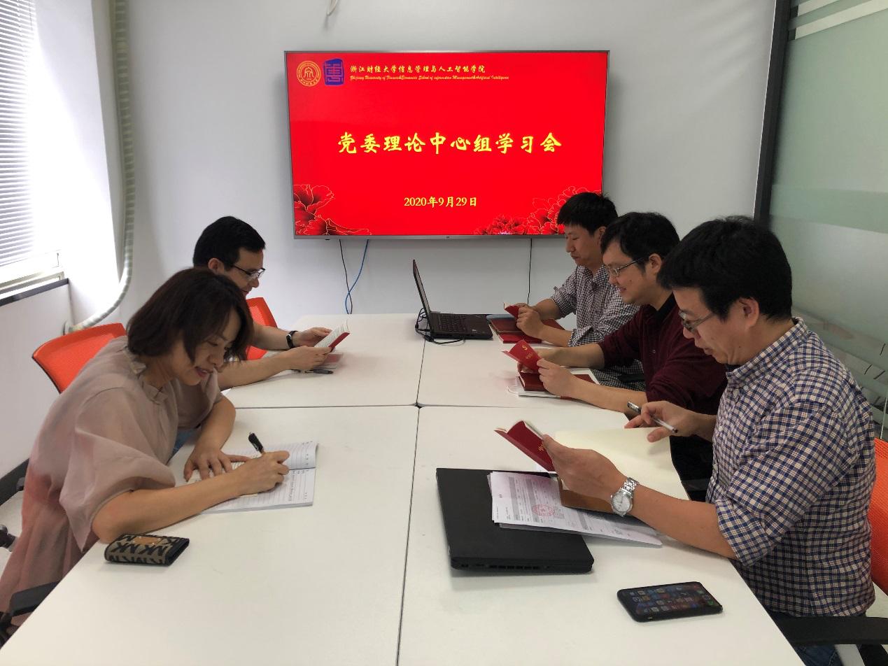 9月29日,信智学院党委理论学习组召开会议,开展党章集体学习,学院理论学习中心组成员参加会议,学习会由学院党委书记徐奇伟主持。