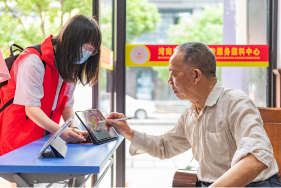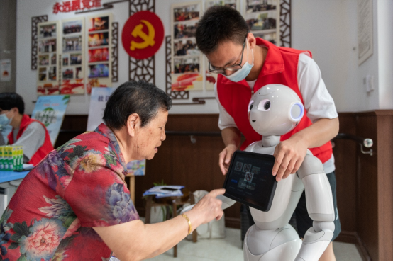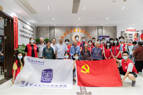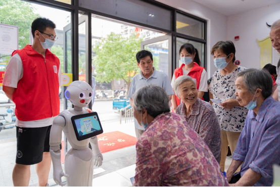 2021年6月17日,信智学院学生第四党支部党员走进湾南社区养老服务照料中心开展志愿服务活动。通过舞动机器人、唱响红歌、即刻出片、动态简笔画等带有科技色彩的游戏活动让社区老人搭上数字时代的便车,体验科技成果,享受智慧生活。