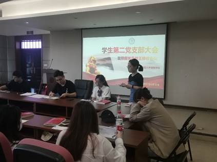 值建党百年之际,为深入贯彻落实习近平新时代中国特色社会主义思想,进一步探索创新党建工作,提升基层党组织凝聚力,加强学生党员先锋模范意识。2021年6月22日下午,金年会学生第二党支部于9302会议室召开了6月支部大会暨组织生活会,11名党员同志及37名预备党员参加此次会议,会议由学生第二党支部书记洪宝华老师主持。