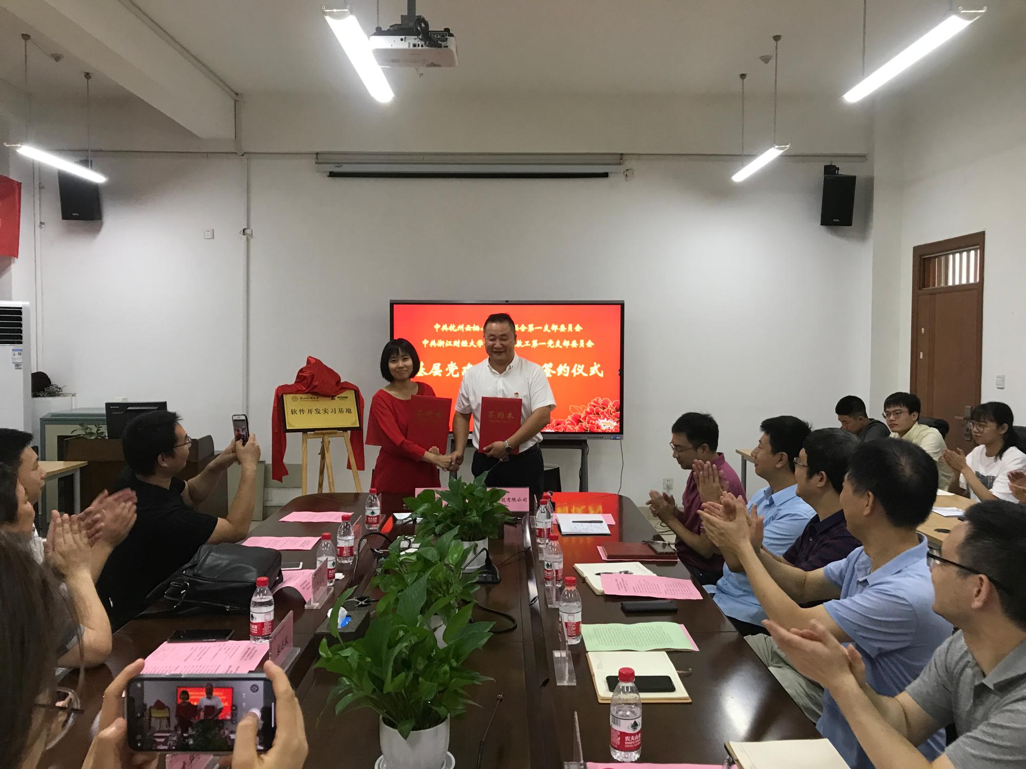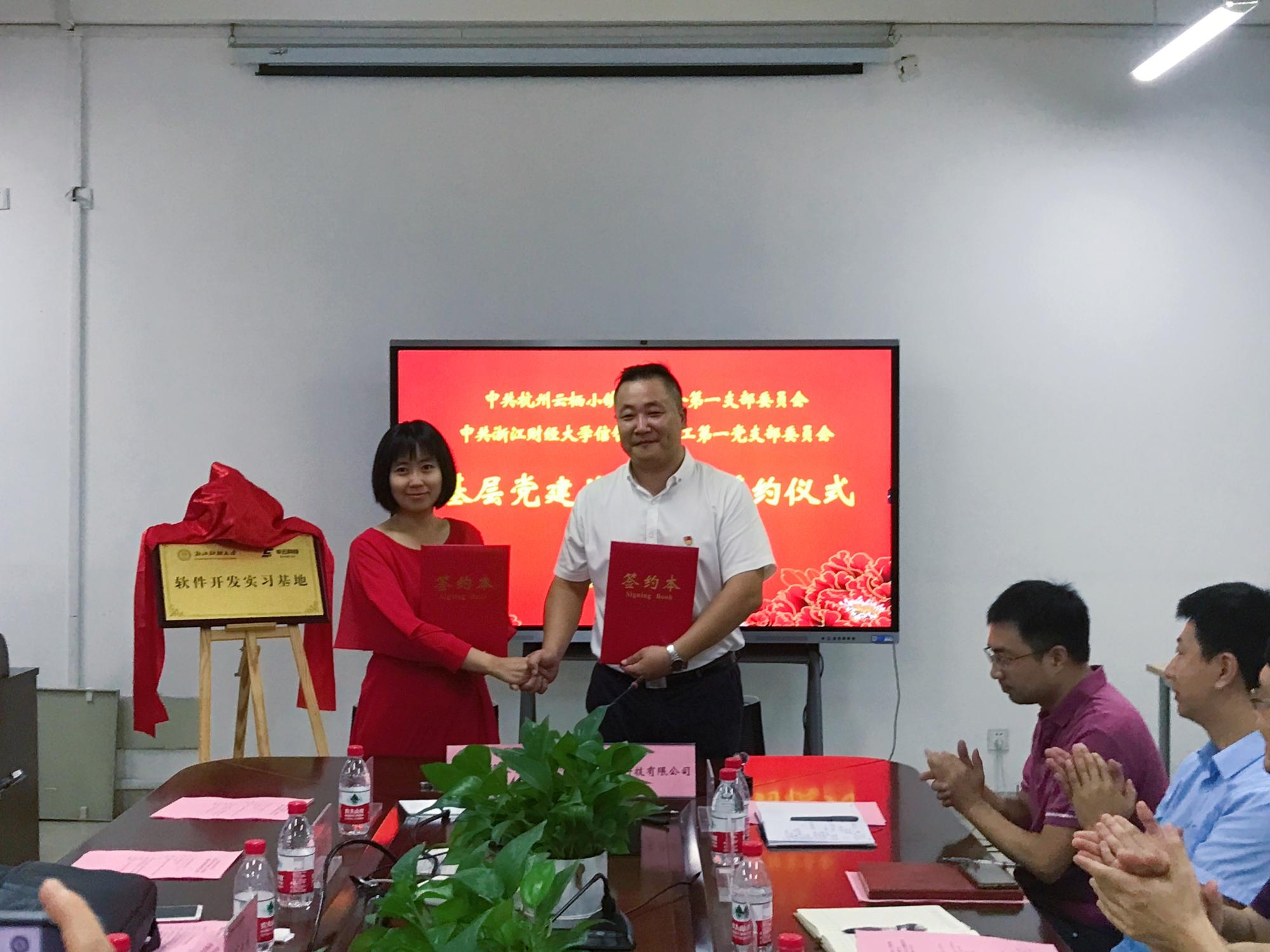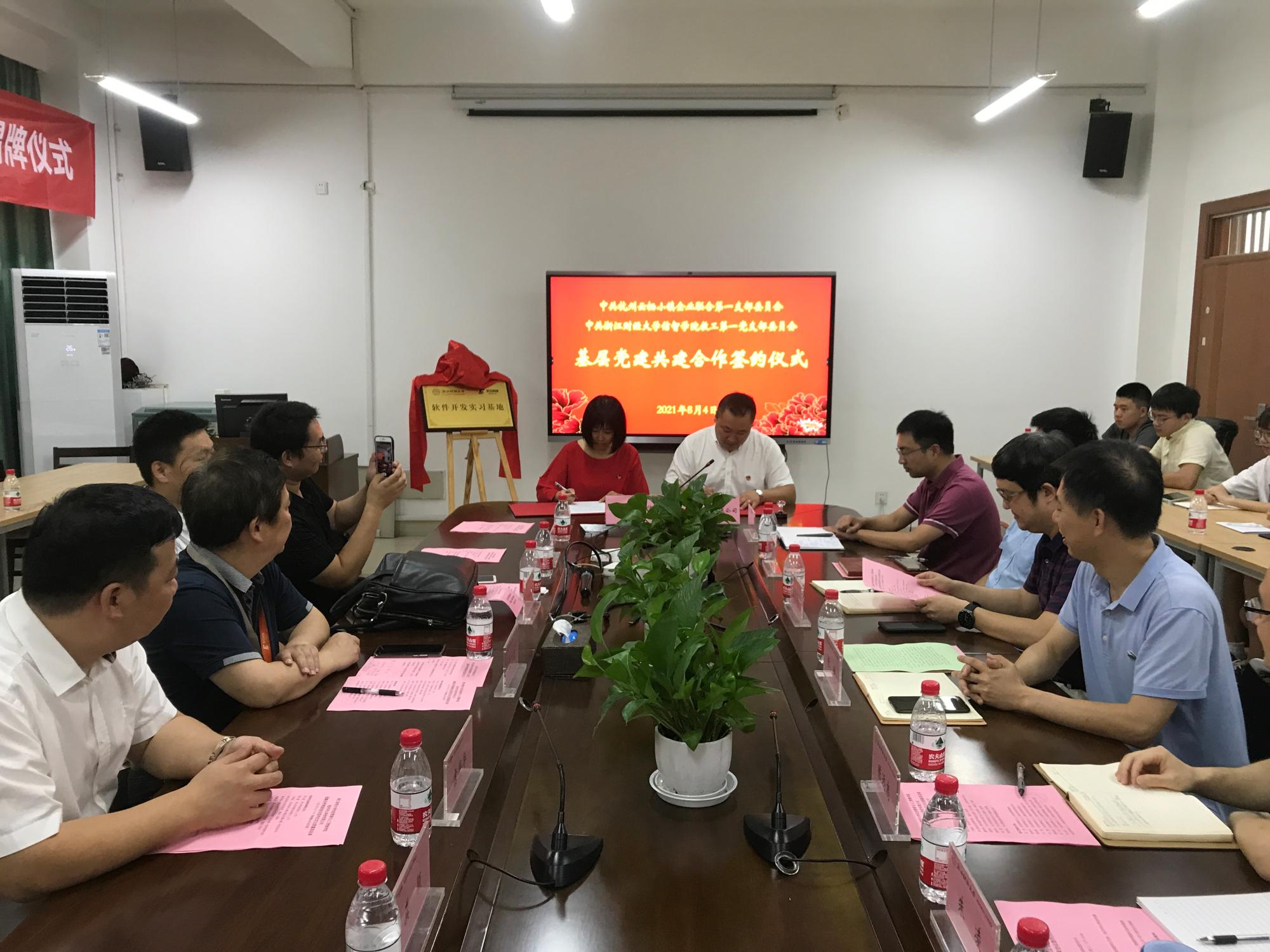信息管理与人工智能学院教工第一党支部与中共杭州云栖小镇企业联合第一支部开展党史学习“不忘初心、牢记使命”基层党建共建合作,并于8月4日在9号楼404会议室举办支部共建仪式。出席仪式的与会嘉宾有信智学院院长张帅、党委书记徐奇伟、副院长陈远高、副书记田聪、中共杭州云栖小镇企业联合第一支部委员会支部书记丁树成及党群代表、信智学院教工第一党支部书记朱凌及党群代表。仪式由信智学院党委书记徐奇伟主持。