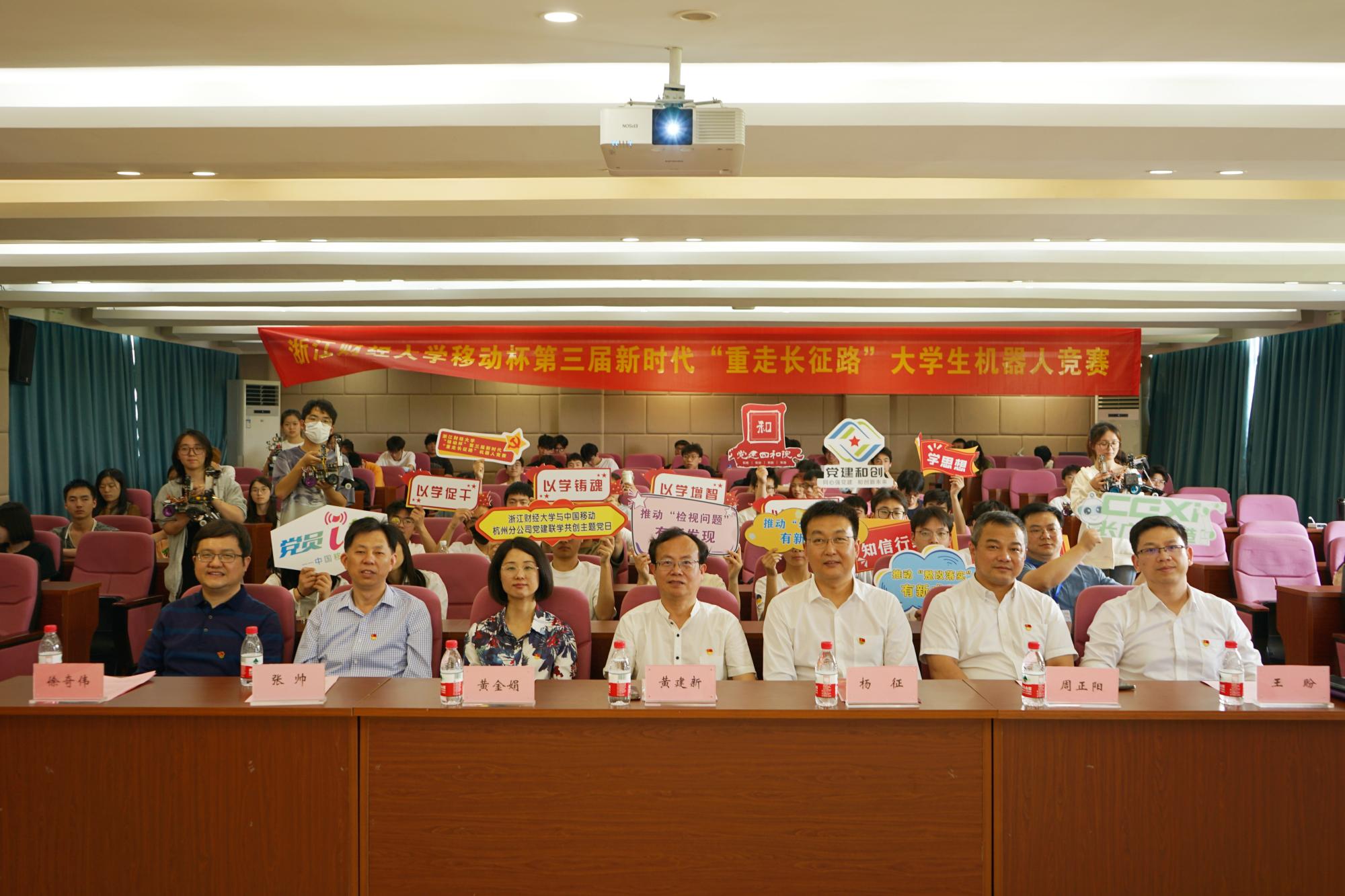 钱塘江畔喜联建,数智相生立潮头。5月16日下午,金年会jinnianhuicom与中国移动杭州分公司党建联学共创主题党日活动暨“移动杯”第三届新时代“重走长征路”大学生机器人竞赛开幕式在信智学院楼举行。校党委副书记黄建新,中国移动杭州分公司党委委员、副总经理杨征出席,中国移动杭州分公司、钱塘分公司相关负责人及学校相关职能部门、信智学院负责人和师生代表等参加。