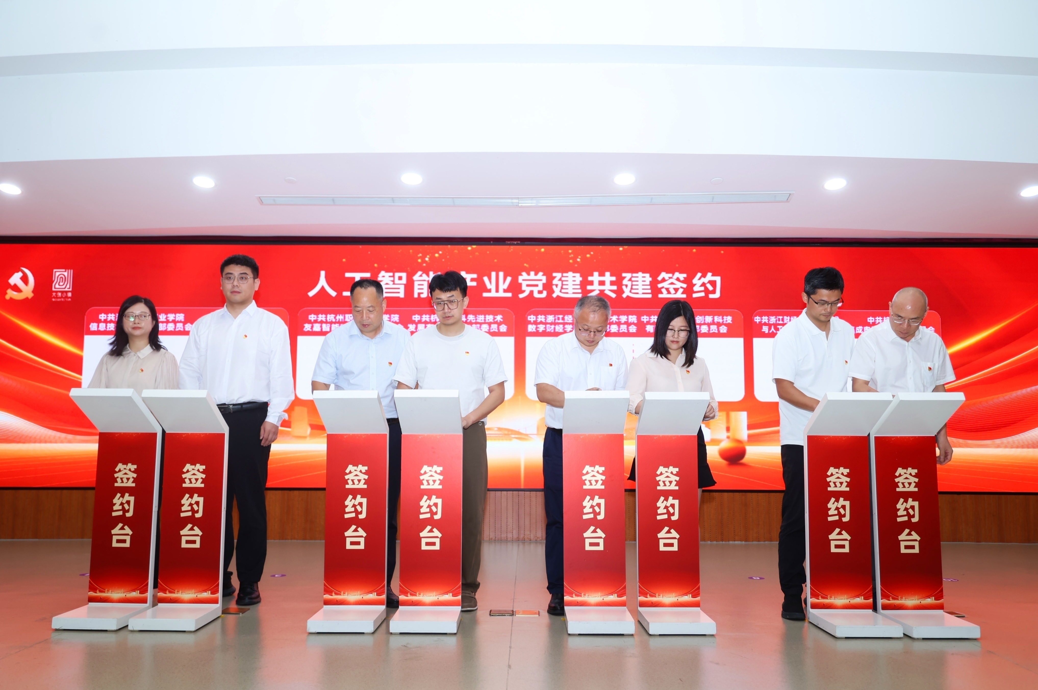活动中,学院与钱塘区科技型企业签署了人工智能产业党建共建协议,旨在通过校企党建深度融合,进一步推动产学研协同创新与人才培养。