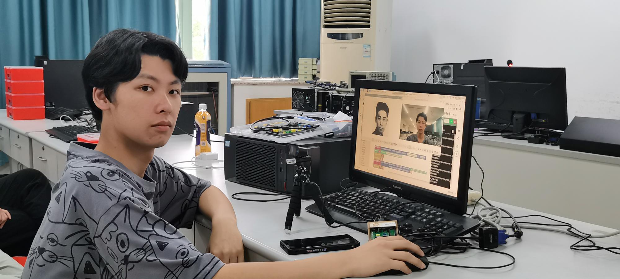 猜猜看你和哪一位历史人物的容貌最为相似?想学习如何用灯带“动感作画”吗?近日,在金年会jinnianhuicom信息管理与人工智能学院的实验室里,朱凌老师正在给学生们上《智能时代》通识教育课。由于授课对象是文理科学生兼有,同学们编程基础不一,有些甚至是零基础。针对这一情况,朱凌老师大胆尝试教学改革,制定创新教学方案,与古德微机器人共建课程,积极探索产学合作协同育人的人才培养新模式,在人工智能通识教育中将知识与技能融合,采用树莓派图形化编程技术设计了一系列人脸识别、语音识别、文字识别、机器翻译、物联网控制、智能硬件等虚拟仿真实验教学案例,帮助同学们更形象更真切地体验人工智能时代中信息物理空间融合的程序设计在我们工作、学习、生活中的强大应用。