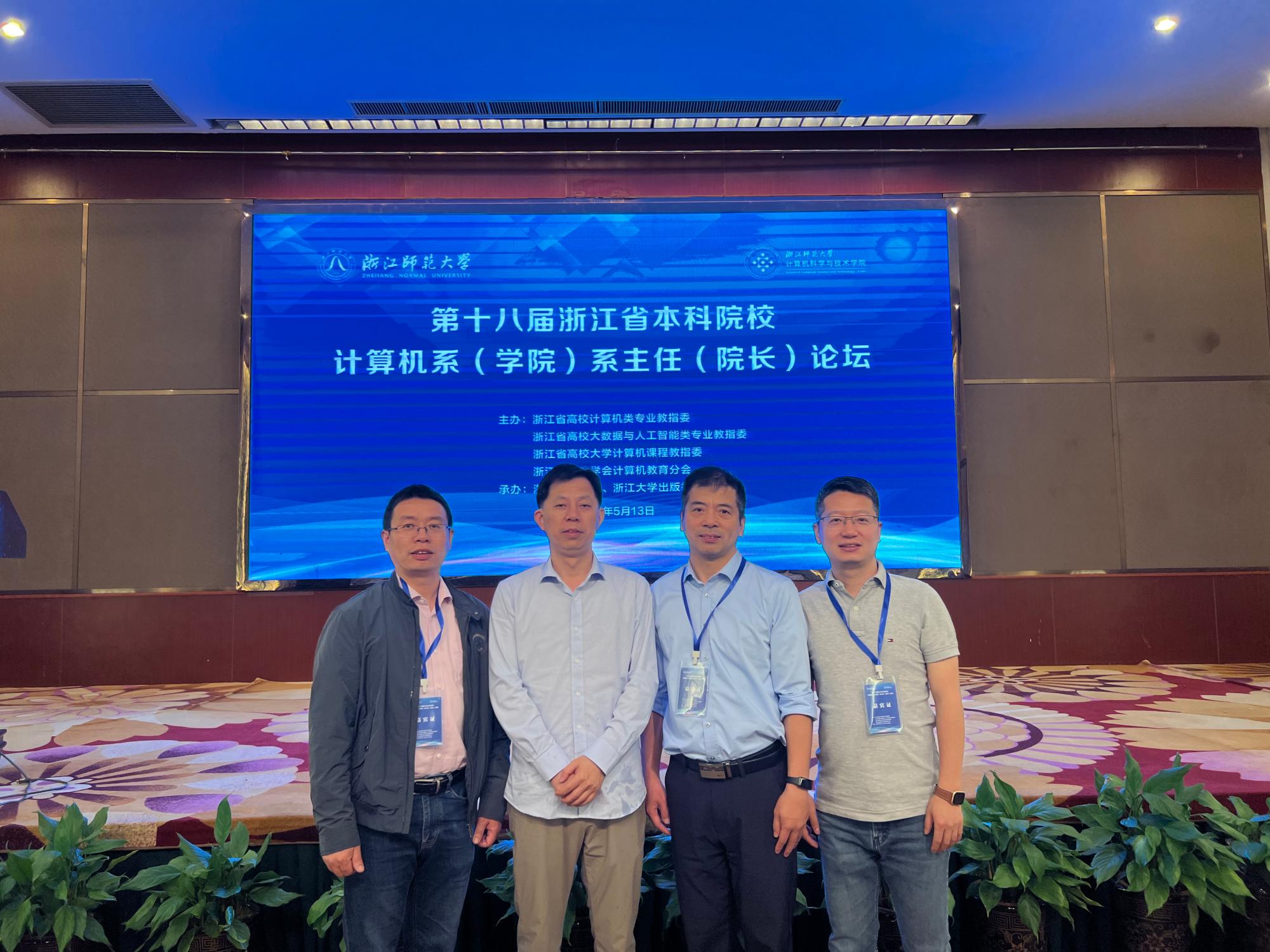 5月13日,第十八届届浙江省本科院校计算机系(学院)系主任(院长)论坛在浙师大举行。来自省内外兄弟院校的计算机学院院长、计算机系系主任、计算机领域的专家学者和业界精英共计100余人齐聚,畅谈计算机学科面临的热点、机遇与挑战。学院院长张帅教授、院长助理陈明晶副教授、实验中心主任章华、办公室主任徐吉锋参会。