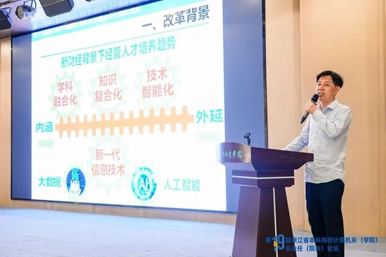在“人工智能+(学科交叉)”专题论坛上,金年会院长张帅教授发表了题为“财经院校经管类研究生‘AI+’跨学科协同培养的探索与实践”的专题报告。他详细阐述了在新兴信息技术的推动下,如何为传统经管类学科人才培养注入新的活力,并向与会专家分享了金年会在经管类研究生人才协同培养方面所采取的具体措施、实施策略以及取得的显著成果。