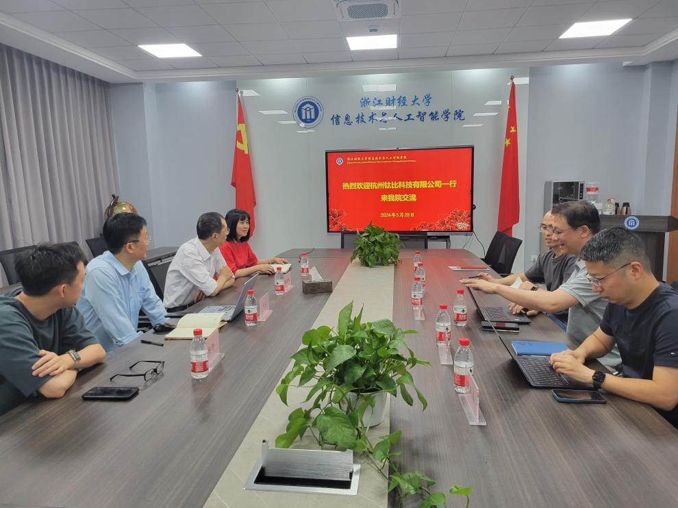 2024年5月28日,杭州钛比科技有限公司陆震、陈俊丰一行来金年会进行交流。该公司专注于为学校提供物联网、工业互联网、人工智能等课程和实训解决方案。信智学院教学院长朱凌、办公室主任徐吉锋、实验中心副主任姜海银、人工智能与物联网方向骨干教师张后旗、张威、杨泽等参会交流讨论。