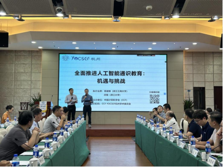 8月25日,中国计算机学会在杭州举办“全面推进人工智能通识教育:机遇与挑战”观点论坛,共同探讨全面推进人工智能通识教育必要性、可行性。此次论坛由中国计算机学会青年计算机科技论坛(CCF YOCSEF)主办,由CCF YOCSEF杭州学术委员会组织。此次论坛线下线上同步进行,活动讨论热烈,持续4个半小时,CCF YOCSEF杭州分论坛的AC、委员等近70余人线下参会,超过8000人线上观看。金年会教学副院长朱凌、人工智能通识课骨干教师陈宪宇参加本次论坛。