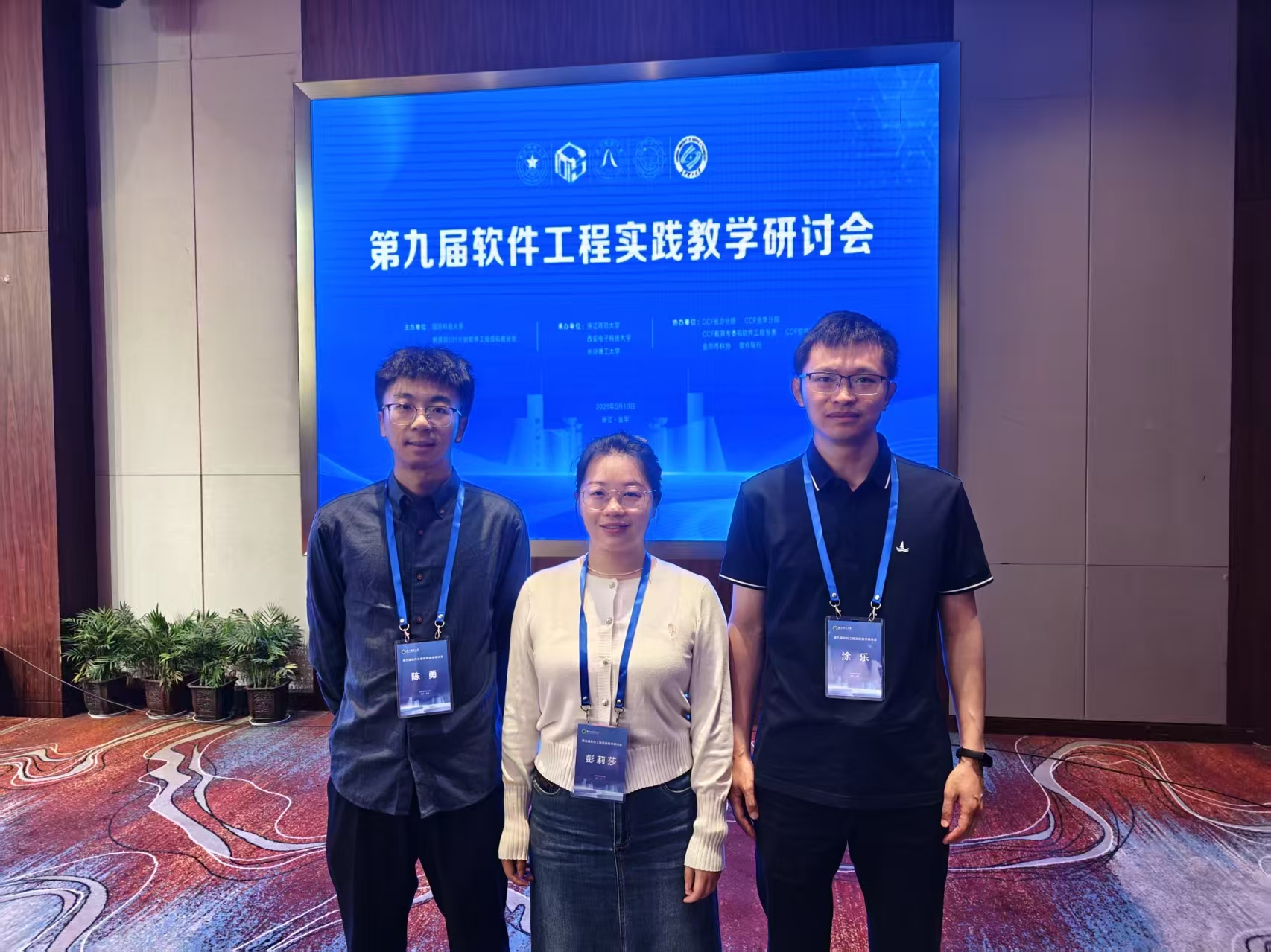 2025年5月9日至10日,第九届软件工程实践教学研讨会在浙江省金华市顺利召开。会议由国防科技大学和教育部“101计划”软件工程课程虚拟教研室主办,浙江师范大学、西安电子科技大学和长沙理工大学联合承办。研讨会汇聚了来自高校和IT业界的软件工程实践者、研究者和教育者,围绕“智能时代下的软件工程教育与人才培养”主题展开深入交流,集中展示了“101计划”课程建设的最新成果,并探讨了新技术背景下软件工程专业建设和课程改革的前沿议题。金年会软件工程系主任涂乐、专任教师彭莉莎老师和陈勇老师参加本次会议。