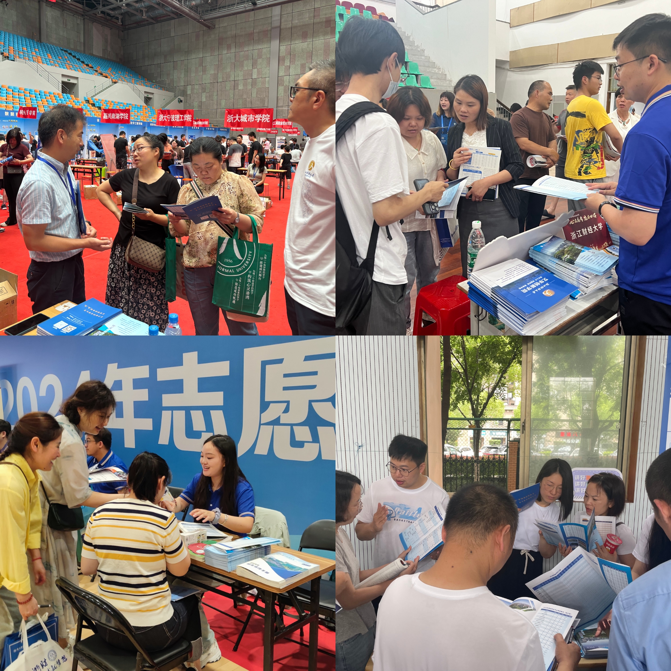 梅雨时节,细雨未晴,各地的招生咨询活动依旧如火如荼地开展,现场人潮涌动、氛围热烈。无数考生与家长热情洋溢地聚集在咨询摊位前,热切地咨询关于报考我校的相关信息,学院的教师们都以满腔的热情和专业的素养,积极展示着我校的办学优势、招生计划、专业培养、就业前景等,细致入微地回答考生与家长们的疑问。他们为考生们的高考志愿填报和学业规划提供了精准且实用的建议,充分展示了我校始终坚持以学生为中心,致力于培养“浙财金生”的办学理念。