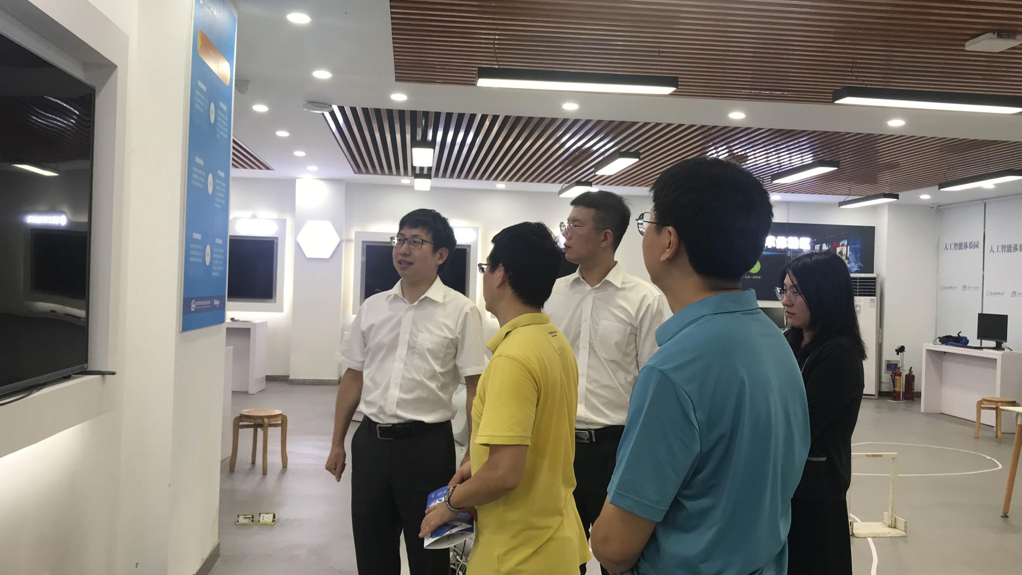 随后,实验中心主任章华带领王镓麟校友一行参观了学院的人工智能体验园。在语音识别、视屏融合、人脸融合、可视化神经网络、VRMr体验区4.0智慧工厂,alpha go和智慧学习模块一应俱全的人工智能体验园里,王校友感慨道,自己和同学们24年前最主要的学习工具就是老式电脑,最大的乐趣就是花1.5元一个小时在机房敲代码,而今的IT技术和智能设备日新月异,希望学弟学妹们能在学校良好的软、硬件教学环境下发扬蹈厉,打好专业基础,成为社会的有用之才。