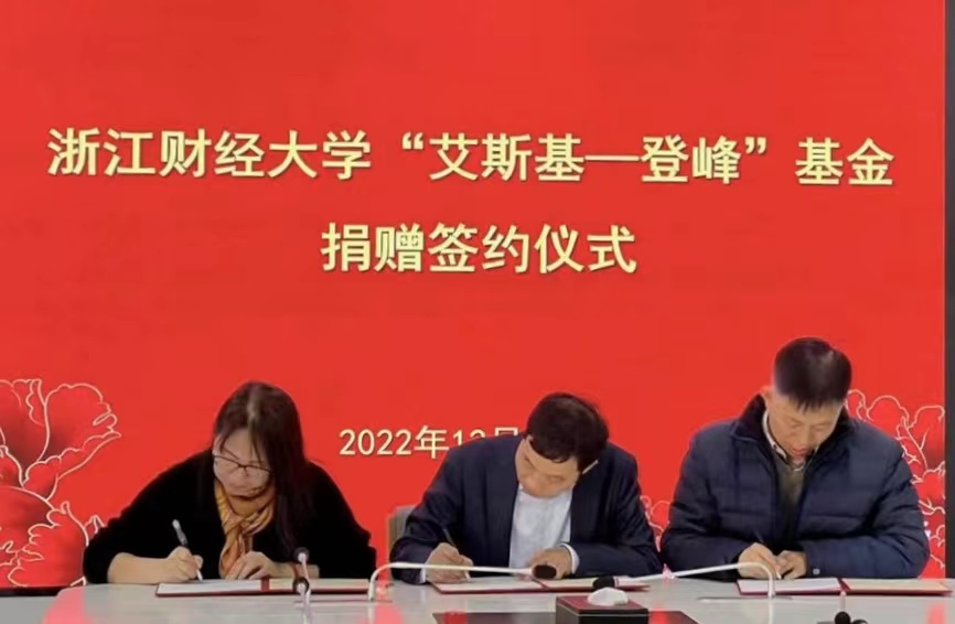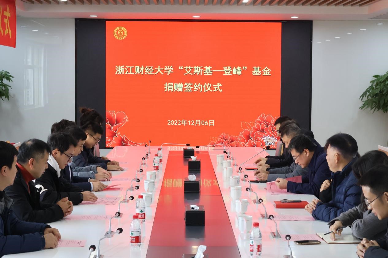 12月6日,“艾斯基—登峰”基金捐赠仪式在金年会jinnianhuicom下沙校区举行。杭州艾斯基光学仪器有限公司向信智学院捐赠30万元,设立“艾斯基—登峰”基金。校党委委员、副校长徐晓东,杭州艾斯基光学仪器有限公司总经理、2008届校友王建平,校社会合作办、校友办主任张红英,计划财务处副处长张稀,信智学院学科带头人、盈阳金融科技学院院长张文宇,信智学院院长张帅、党委书记徐奇伟、副院长陈远高、副书记田聪、副院长隆清琦、信息管理系主任刘维树、电子商务系主任陈明晶,院团委书记、校友工作联络员毛立晨,研究生代表等出席仪式。