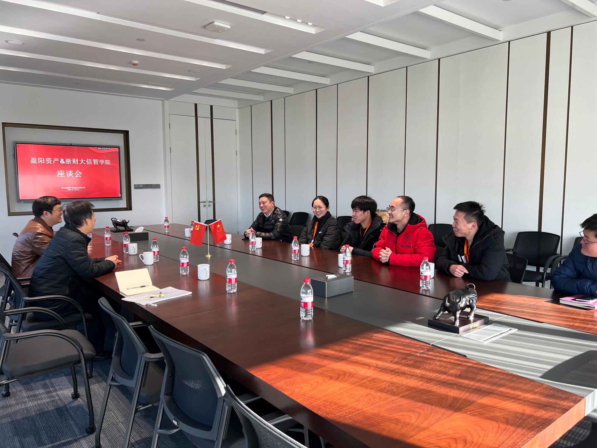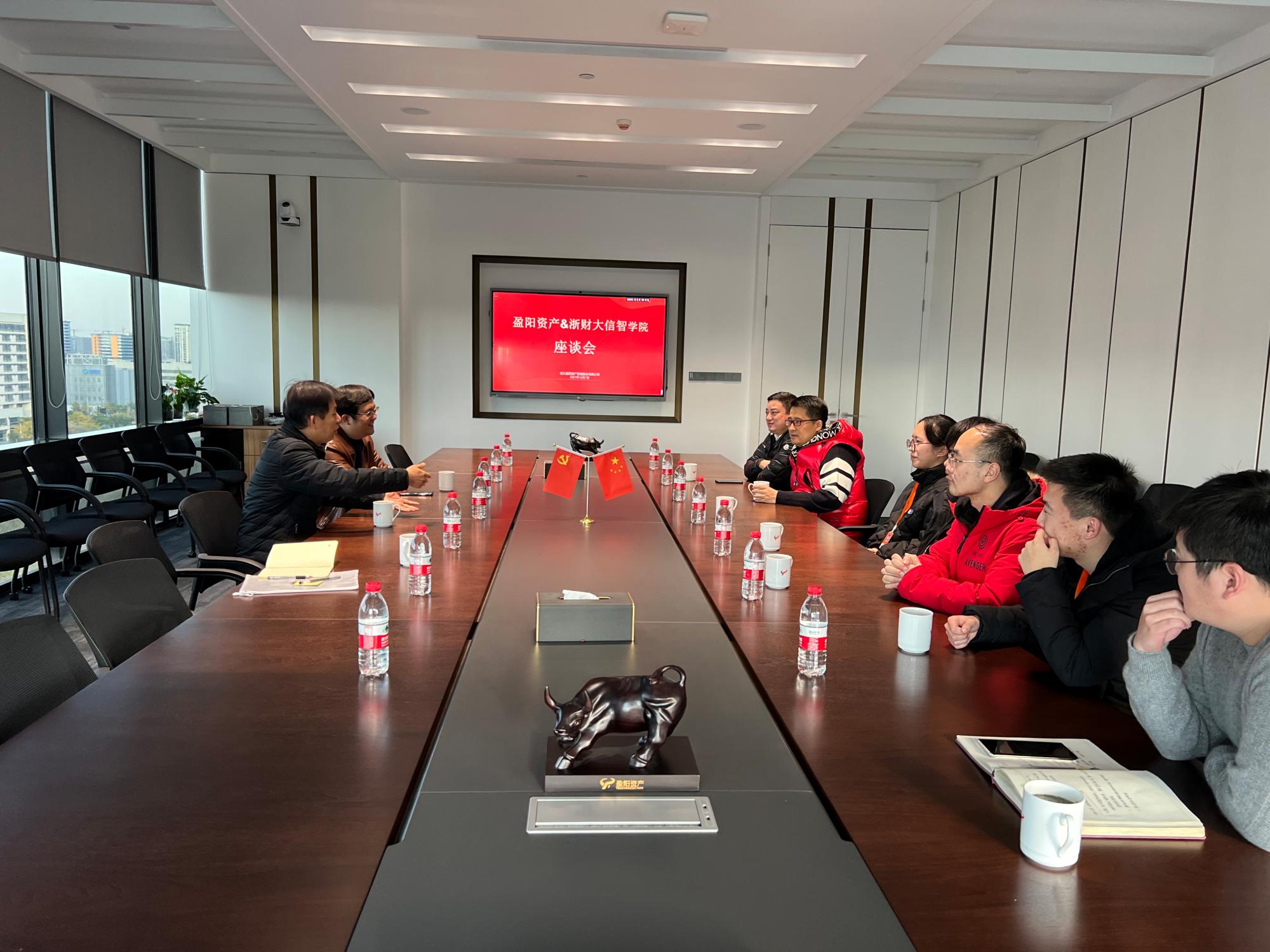 12月1日下午,学院院长张帅、党委书记徐奇伟一行三人前往浙江盈阳资产管理股份有限公司走访盈阳资产创始人楼栋校友、总经理孔繁岗校友并看望在公司基地实习的学院学生。