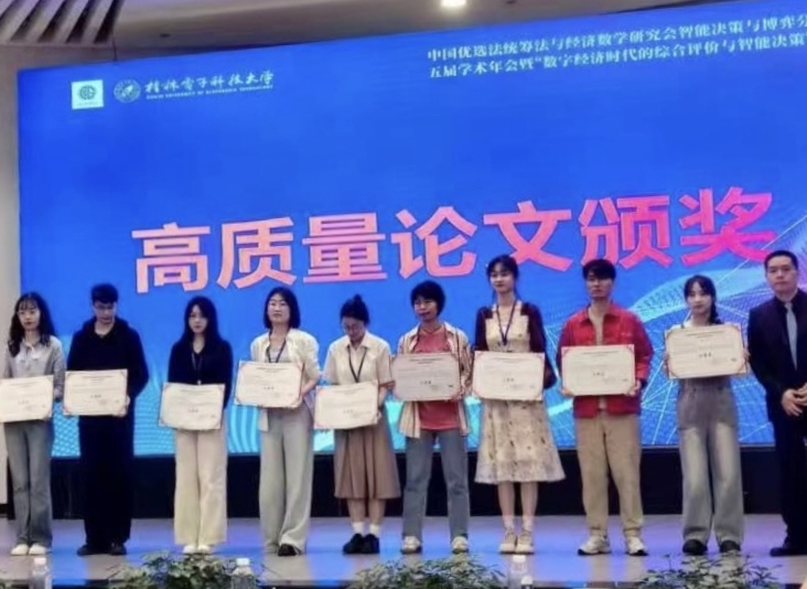 中国优选法统筹法与经济数字研究会智能决策与博弈分会第五届学术年会既“数字经济时代的综合评价与智能决策”论坛于2024年5月17日至19日在桂林举行。本届会议由中国优选法统筹法与经济数学研究会(以下简称中国“双法”研究会)智能决策与博弈分会、桂林电子科技大学联合主办,桂林电子科技大学商学院承办,电子科技大学经济与管理学院协办。桂林电子科技大学党委书记唐平秋、中国“双法”研究会智能决策与博弈分会理事长李登峰担任本次大会主席。金年会教师隆清琦、彭娟娟、张琦、孙琪及金年会管理科学与工程专业吴晓波、韩佳芮、吴小萌、范佳怡、刘婷、徐倩雯研究生参加了此次会议。