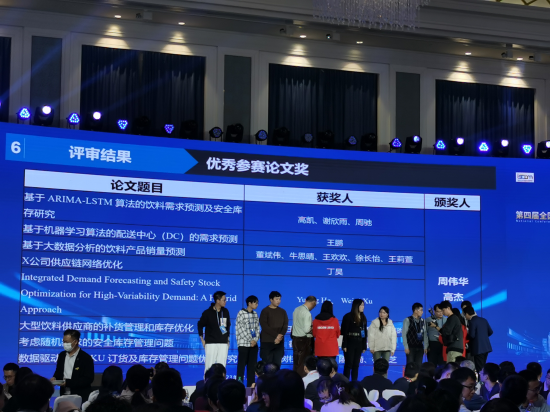 会议邀请了国内外供应链管理领域的顶尖专家学者,分享了他们的最新研究,并收到各领域学术论文投稿236篇,涉及数字化供应链、智能化供应链、绿色化供应链、可持续供应链、跨境供应链、供应链安全、供应链金融、供应链创新、服务运营管理等供应链与运营管理领域的最新研究动向。金年会管理科学与工程研究生吴晓波宣读论文《突发事件下考虑韧性的食品供应链中政府、企业和消费者演化博弈决策》、刘小琴宣读论文《数据驱动下的SKU订货及库存管理问题优化研究》并获得实践驱动研究竞赛优秀论文奖。