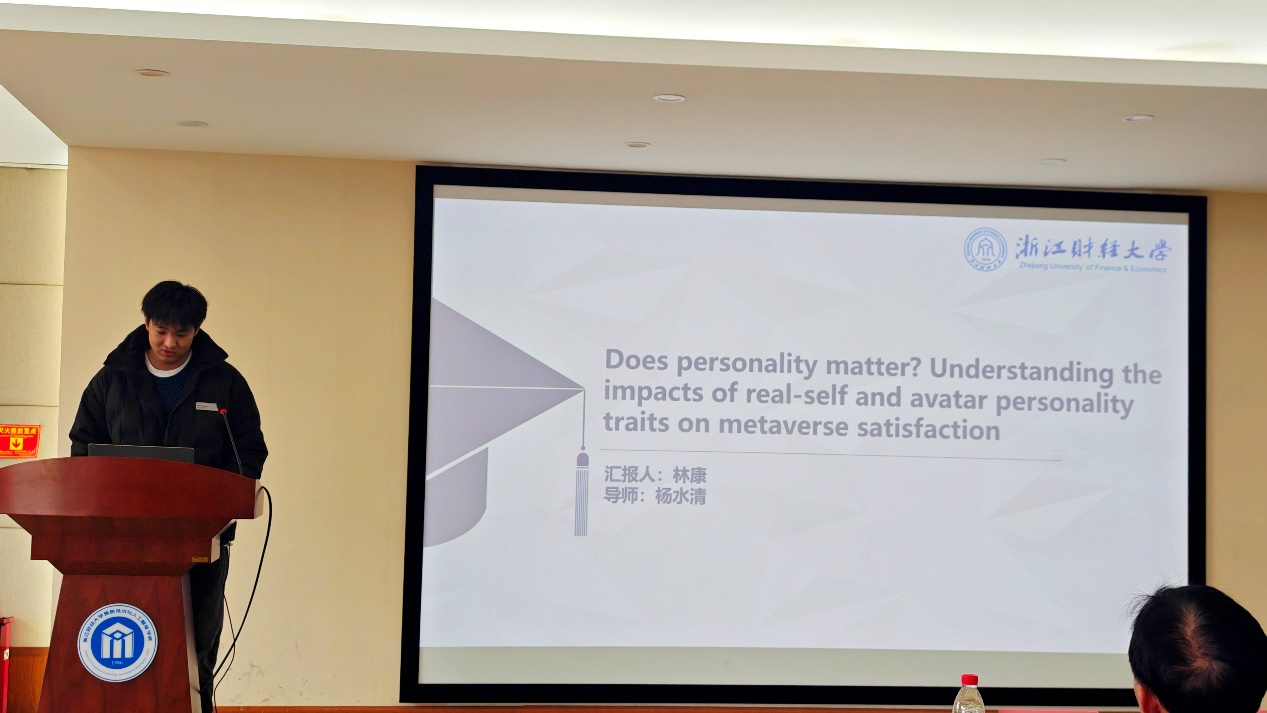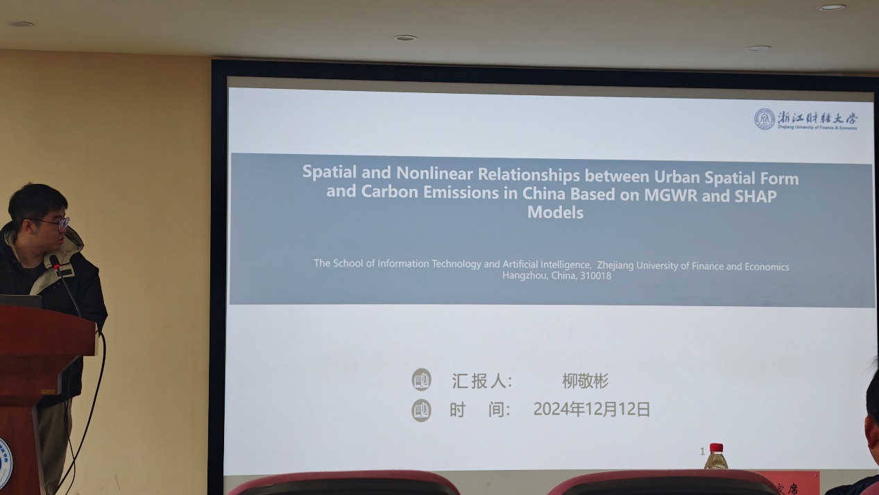 2024年12月12日,金年会诚信信誉至上在9302会议室成功举办了2024年第7期“数智钱潮”研究生论坛。本次论坛由金年会6名研究生主讲,邀请了张帅教授、何以凡博士做点评专家,近百名研究生参加,24级电子信息专业研究生王亚芳主持。主讲内容涵盖了理解真实自我和化身个性特征对虚拟世界满意度的影响、基于MGWR和SHAP模型的我国城市空间形态与碳排放的非线性空间关系、英文文献阅读及整理的方法分享等热门话题。