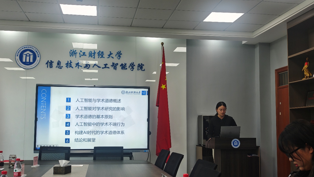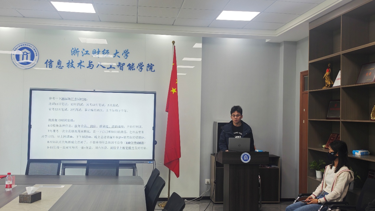 首先,22级管理科学与工程专业的梁曙轩、孙晶怡、夏浩同学,就“考公行测经验分享”、“AZ-number-based large-scale group decision-making method considering conflict behaviors in a social network environment”、“Incomplete ContrastiveMulti-ViewClusteringwith High-ConfidenceGuiding”等议题进行了深入的探讨与分享。其次23级电子信息专业的陈婉婷同学以及季佳瑶同学分享了“如何讲好你的故事”和“人工智能与学术道德”。通过分享自己的经验和成果,不仅激发了学生们的兴趣,也鼓励大家思考如何将所学应用于实际生活中。这些分享为学生们提供了新的思路,有助于他们对不同的领域和思维方式进行更深入的了解。
