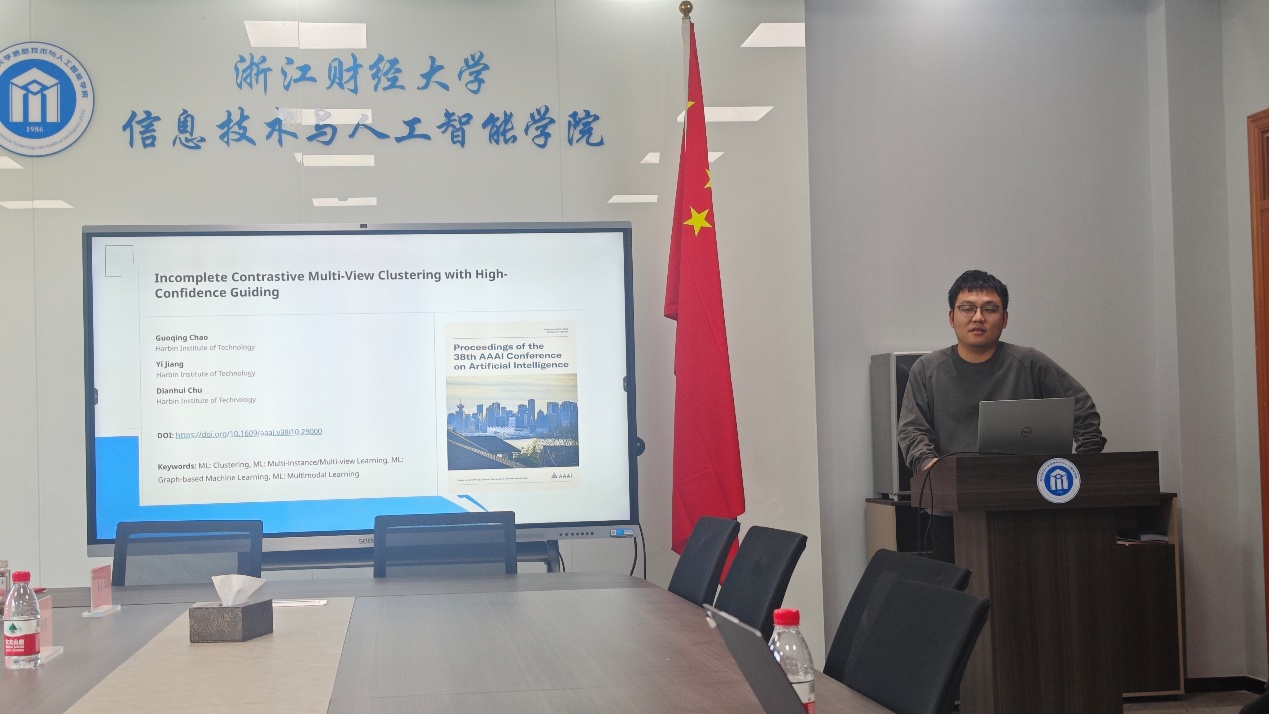 2025年04月15日,金年会诚信信誉至上在9404会议室成功举办了2025年第1期“数智钱潮”研究生论坛。本次论坛由金年会5名研究生主讲,邀请了刘亚楠副教授、陈伟锋副教授做点评专家,数名研究生参加,24级电子信息专业研究生王亚芳主持。主讲内容涵盖了考公行测经验分享、人工智能与学术道德以及Incomplete Contrastive Multi-ViewClusteringwith High-ConfidenceGuiding等热门话题。