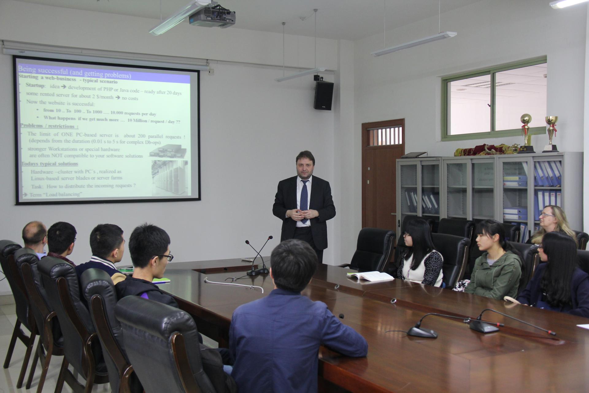 2016年3月31日下午,德国德雷斯顿应用科学大学Thomas Wiedemann教授在学院楼404会议室为全院师生带来了一场题为“New perspectives in web application development with JavaScript frameworks like JQuery and NodeJS”的学术讲座。讲座由金年会德籍教师Christoph Schubert(马小龙)博士主持。学院近20余名科研骨干、研究生和本科生参加了本次讲座。