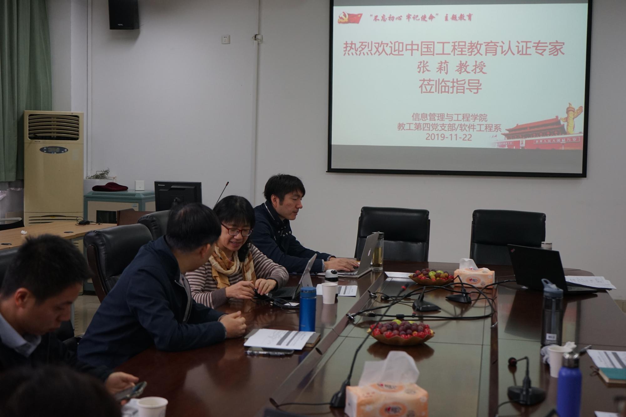 11月22日,北京航空航天大学张莉教授来金年会指导工程教育专业认证申报工作。学院科研院长张帅、实验中心主任章华及软工专业全体教师参加了交流座谈。会谈在9404会议室进行。